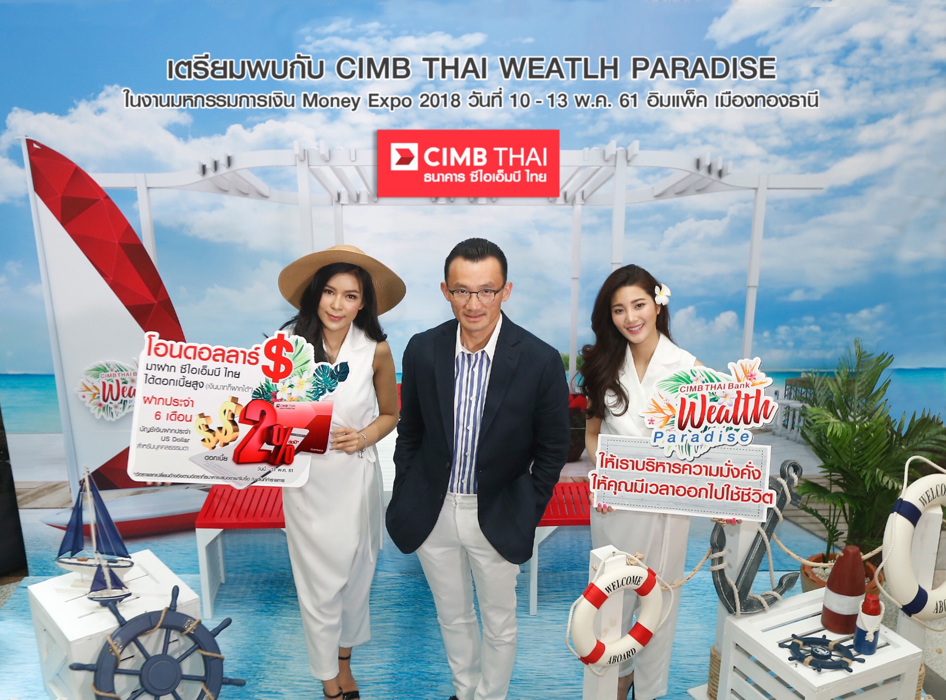 7 พฤษภาคม 2561 : กิตติพันธ์ อนุตรโสตถิ กรรมการผู้จัดการใหญ่และประธานเจ้าหน้าที่บริหาร ธนาคาร ซีไอเอ็มบี ไทย เปิดตัวแนวคิด CIMB THAI WEALTH PARADISE ในงานมหกรรมการเงิน Money Expo 2018 ด้วยบูธที่จำลองกลิ่นอายของทะเลซึ่งเป็นสถานที่ท่องเที่ยวอันได้รับความนิยมเมื่อคนนึกถึงช่วงเวลาของการผ่อนคลายจากการทำงาน เพราะธนาคารต้องการเชิญชวนลูกค้ามาตั้งเป้าหมายทางการเงินให้ไกลกว่าผลตอบแทน