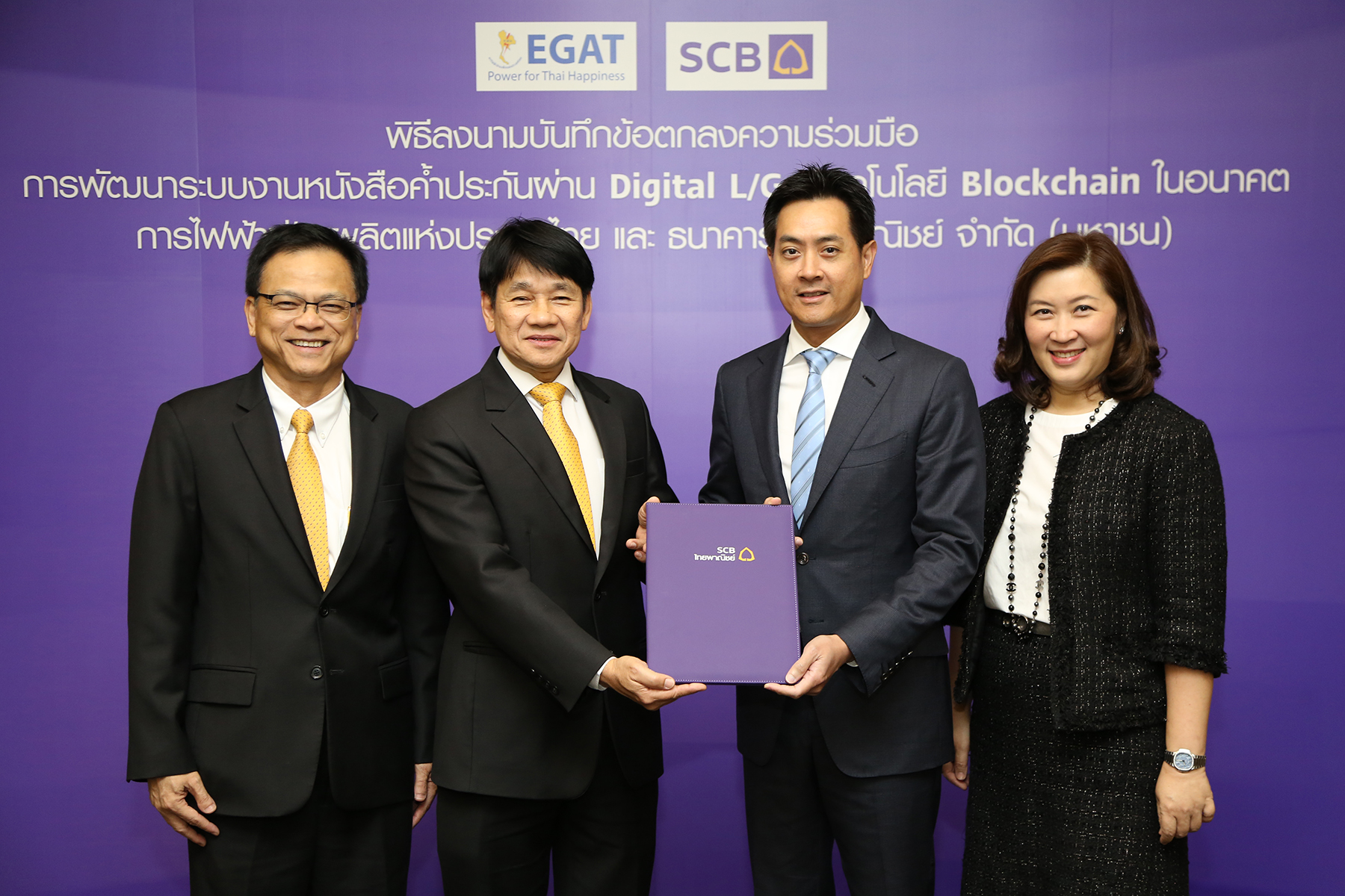 21 พฤษภาคม 2561 : ธนาคารไทยพาณิชย์ ผนึก การไฟฟ้าฝ่ายผลิตแห่งประเทศไทย (กฟผ.) เดินหน้ายกระดับกระบวนการออกหนังสือค้ำประกัน (Letter of Guarantee : LG) จัดพิธีลงนามความร่วมมือในการพัฒนาระบบ Digital LG โดยการนำเทคโนโลยีพลิกโฉมขั้นตอนการออก LG ในรูปแบบเดิมที่มีความยุ่งยากทางด้านเอกสารและขาดความคล่องตัว มาสู่รูปแบบดิจิทัลที่ปราศจาคเอกสารในทุกขั้นตอน สะดวก รวดเร็ว ประหยัดต้นทุนในการดำเนินการ เพราะสามารถขออนุมัติหนังสือค้ำประกันจากธนาคารไทยพาณิชย์ได้ด้วยตัวเองแบบเรียลไทม์ตลอด 24 ชั่วโมง