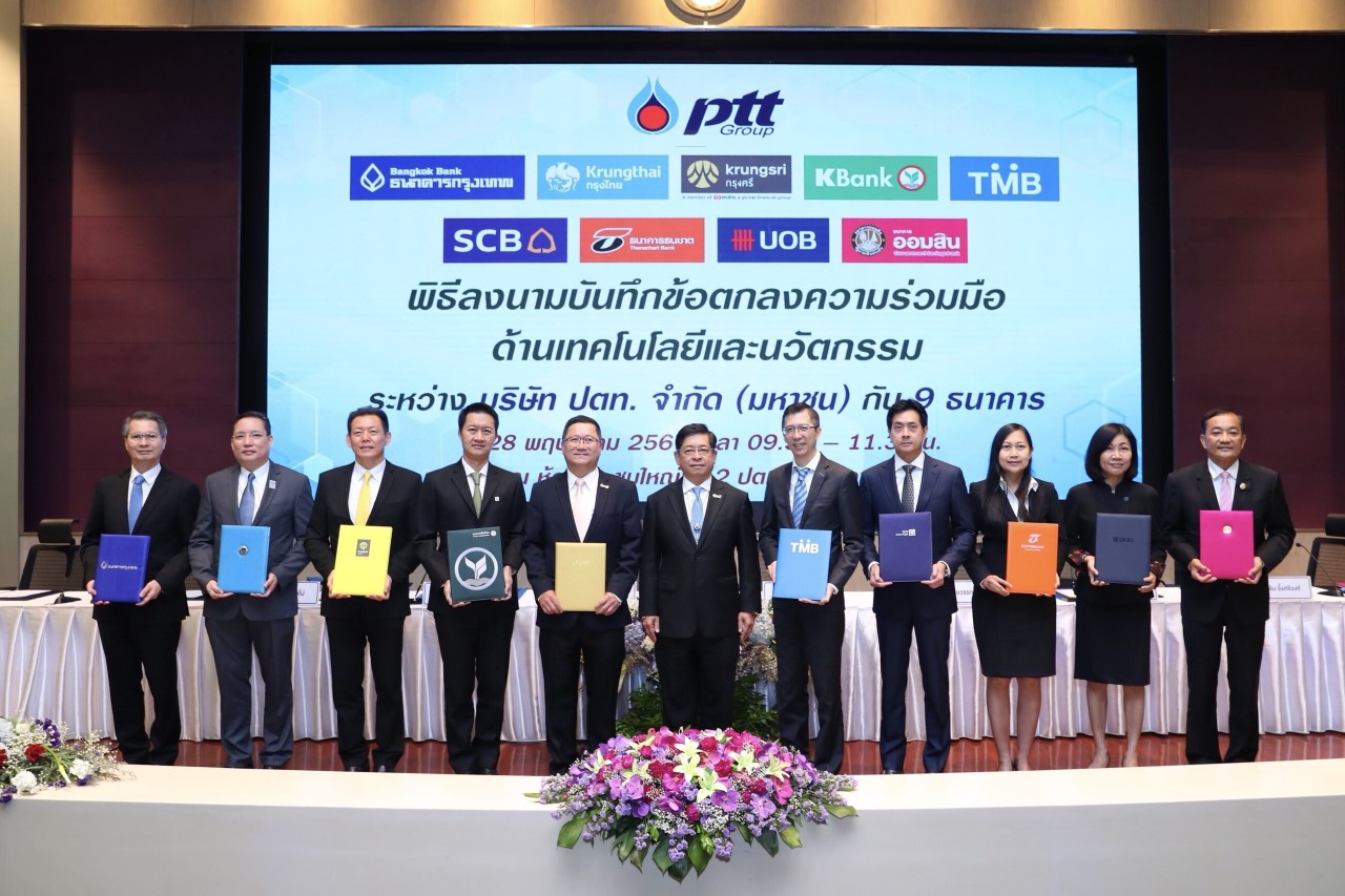 28 พฤษภาคม 2561 : เทวินทร์ วงศ์วานิช ประธานเจ้าหน้าที่บริหารและกรรมการผู้จัดการใหญ่ บริษัท ปตท. จำกัด (มหาชน) ให้เกียรติร่วมใน “พิธีลงนามบันทึกข้อตกลงความร่วมมือ ด้านเทคโนโลยีและนวัตกรรม” ระหว่าง บริษัท ปตท. จำกัด (มหาชน) กับ ธนาคารกรุงเทพ จำกัด (มหาชน) ธนาคารกรุงไทย จำกัด (มหาชน) ธนาคารกรุงศรีอยุธยา จำกัด (มหาชน) ธนาคารกสิกรไทย จำกัด (มหาชน) ธนาคารทหารไทย จำกัด (มหาชน) ธนาคารไทยพาณิชย์ จำกัด (มหาชน) ธนาคารธนชาต จำกัด (มหาชน) ธนาคารยูโอบี จำกัด (มหาชน) และ ธนาคารออมสิน โดยมี ชาญศิลป์ ตรีนุชกร ประธานเจ้าหน้าที่เทคโนโลยีและวิศวกรรม บริษัท ปตท. จำกัด (มหาชน) ลงนามร่วมกับผู้บริหาร ทั้ง 9 ธนาคาร เพื่อร่วมกันวางแผนและพัฒนานวัตกรรมด้านการเงิน ซึ่งเป็นหนึ่งในกลไกขับเคลื่อนเศรษฐกิจของประเทศ ตามนโยบาย “ไทยแลนด์ 4.0” เพื่อให้เกิดความคล่องตัวในการทำธุรกรรมทางการเงิน ![]()