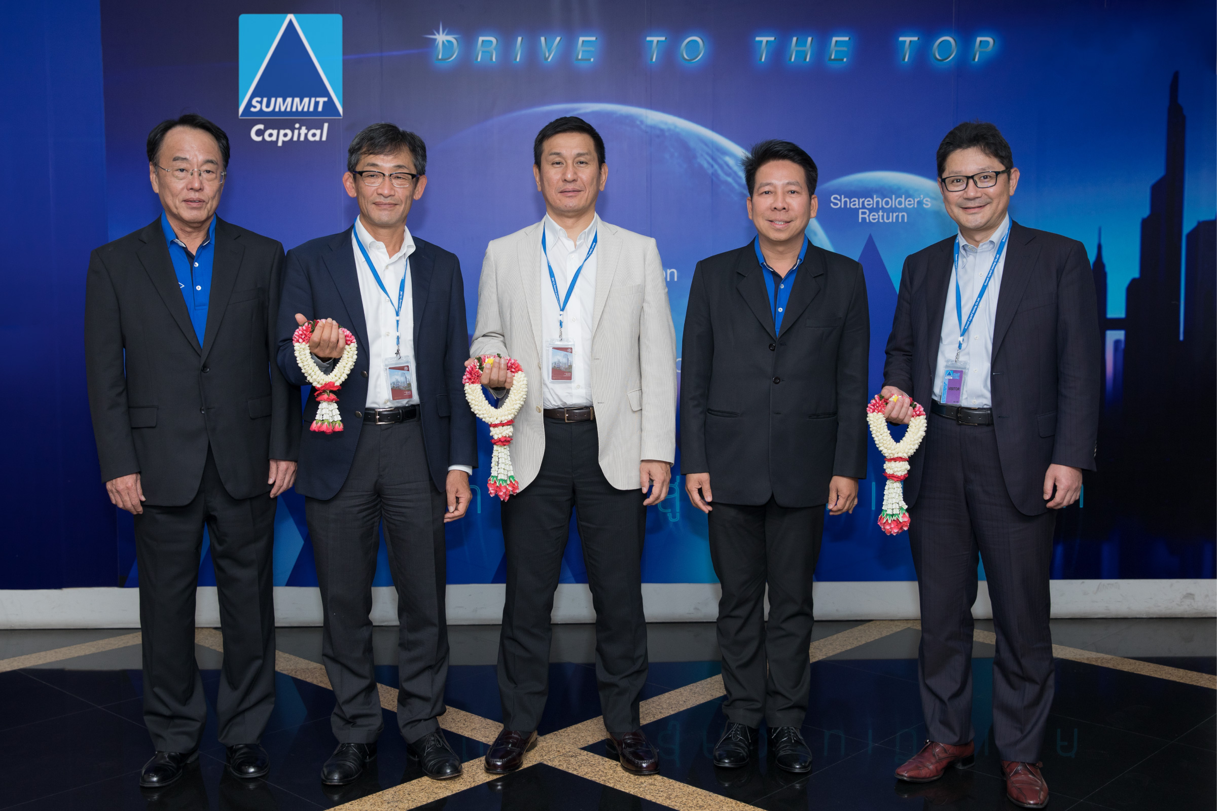 7 มิถุนายน 2561 : นายวิชิต พยุหนาวีชัย (ที่สองจากขวา) ประธานเจ้าหน้าที่บริหาร บริษัท ซัมมิท แคปปิตอล ลีสซิ่ง จำกัด ให้การต้อนรับ นายโชอิชิโระ โอกะ (กลาง) ผู้บริหารจัดการสายงานระบบขนส่งและการก่อสร้าง นายชินนิจิ กาโตะ (ขวาสุด) ผู้จัดการทั่วไปกลุ่มงานธุรกิจยานยนต์ ภายใต้สายงานระบบขนส่งและการก่อสร้าง บริษัท ซูมิโตโม คอร์ปอเรชั่น ประเทศญี่ปุ่น และนายมาซาทากะ ทาคานิชิ (ที่สองจากซ้าย) ผู้จัดการทั่วไปกลุ่มธุรกิจระบบขนส่งและการก่อสร้างของ บริษัท ซูมิโตโม คอร์ปอเรชั่น ในเอเชียและโอเชียเนีย (สิงคโปร์)