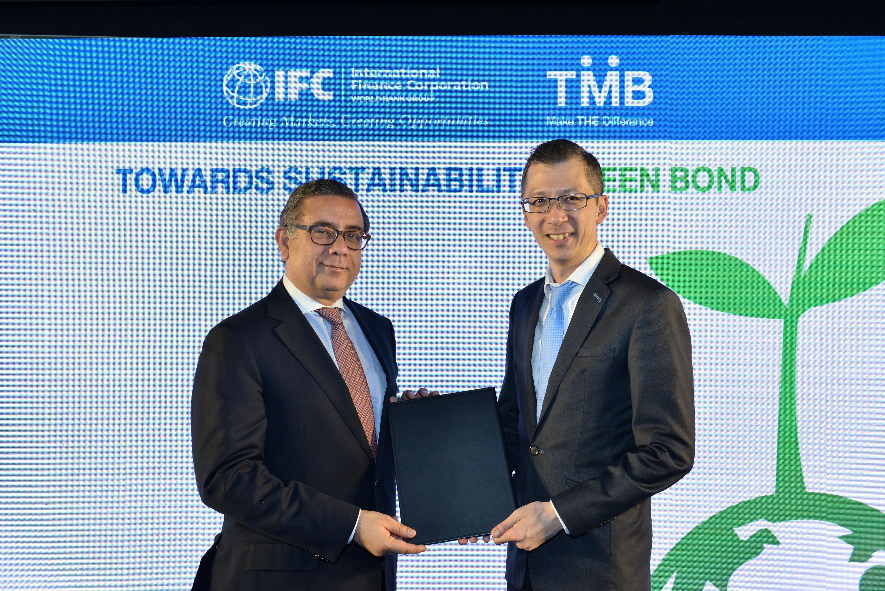 นายวิเวก พาทัค ผู้อำนวยการประจำภูมิภาคเอเชียตะวันออกและแปซิฟิก ไอเอฟซี กล่าวว่า “กรีนบอนด์ของธนาคารพาณิชย์ไทยแห่งแรก ซึ่งออกโดยทีเอ็มบีนี้ นับได้ว่าเป็นกรีนบอนด์ชุดที่ 2 ของภูมิภาคเอเชียตะวันออกและแปซิฟิกที่ไอเอฟซีลงทุน และจะมีบทบาทสำคัญในการช่วยเร่งพัฒนาตลาดกรีนบอนด์ที่เพิ่งเริ่มตั้งตัวในประเทศไทย ซึ่งเราหวังว่า ผู้ระดมทุนรายอื่นๆจะให้ความสนใจ และหันมาออกกรีนบอนด์เพื่อสนับสนุนโครงการที่เท่าทันต่อสภาพภูมิอากาศ (climate-smart project) เพิ่มมากขึ้นต่อไป”