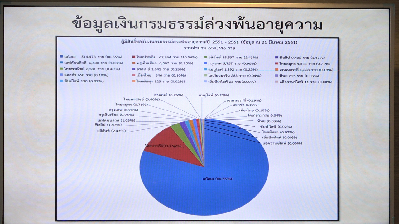 12 กรกฎาคม 2561 : นายจรัญ สอนสวัสดิ์ ผู้จัดการกองทุนประกันชีวิต เปิดเผยว่า ประชาชนที่ทำประกันชีวิตแล้ว แต่ไม่ทราบถึงสิทธิประโยชน์ตามกรมธรรม์มีอีกจำนวนมาก เห็นได้จาก เงินตามกรมธรรม์ล่วงพ้นอายุความ จนเวลาผ่านไปถึง 10 ปี ที่ผู้เอาประกันชีวิตไม่ได้ไปขอรับเงินตามกฎหมาย เงินดังกล่าวเรียกว่า เงินตามกรมธรรม์ล่วงพ้นอายุความ