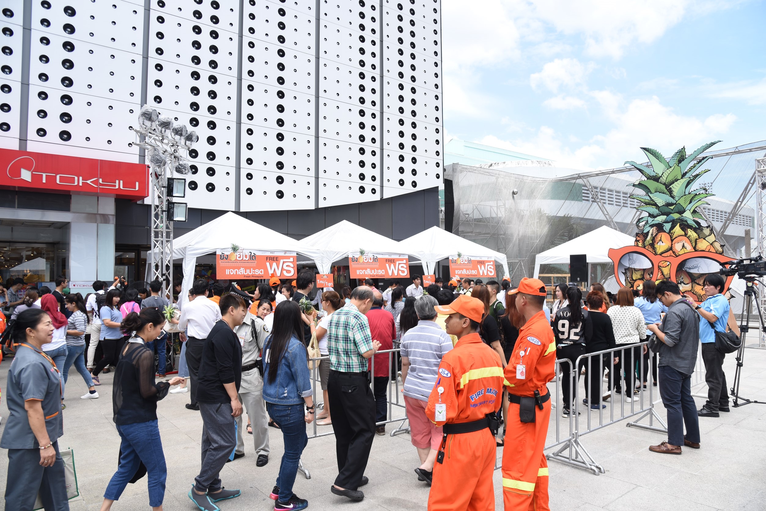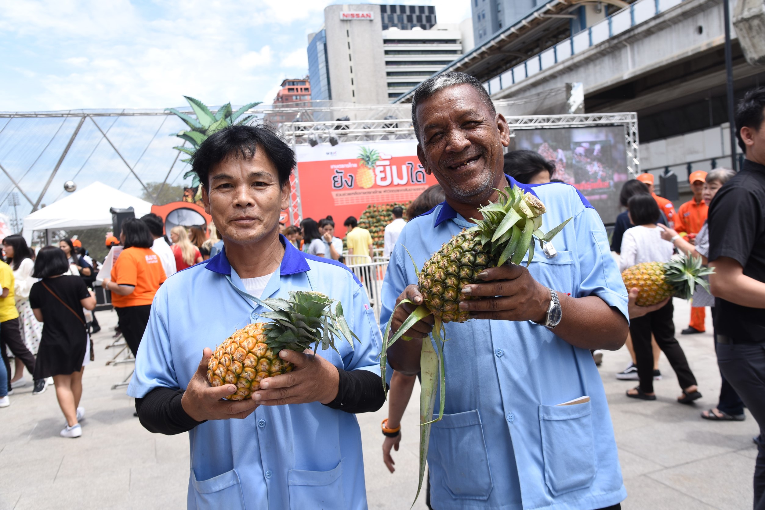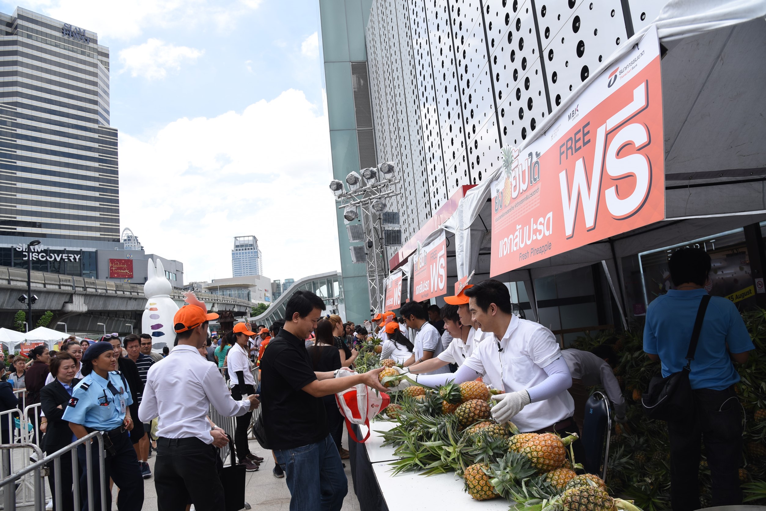 โดยร่วมมือกับพันธมิตรได้แก่ ศูนย์การค้าเอ็ม บี เค เซ็นเตอร์ และโรงแรมปทุมวันปริ๊นเซส ไปซื้อสับปะรดจากไร่ของเกษตรกรในตำบลบ้านเสด็จ อำเภอเมืองฯ จังหวัดลำปาง จำนวน 16,000 กิโลกรัม นำมาแจกฟรีแก่ลูกค้า ชุมชนละแวกใกล้เคียง และประชาชนทั่วไป พร้อมกันนี้ยังร่วมรณรงค์เรื่องลดการใช้ถุงพลาสติก โดยเชิญชวนให้ผู้สนใจรับสับปะรดนำถุงผ้ามาเอง