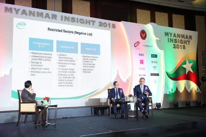งานสัมมนา “เมียนมา อินไซต์ 2018” เน้นเรื่องภาพรวมของโอกาสลงทุนในเมียนมาและเจาะลึกสาขาที่รัฐบาลเมียนมาให้ความสำคัญลำดับต้น รวมทั้งสาขาที่นักลงทุนไทยให้ความสนใจ โดยจะแบ่งออกเป็นการเสวนา ๕ เวที ได้แก่ การเสวนาเรื่อง (๑) การลงทุนในต่างประเทศ ทำไมถึงเลือกเมียนมา (๒) อุตสาหกรรมการท่องเที่ยวในเมียนมา วิธีการและพื้นที่ที่นักลงทุนสามารถสนับสนุนเมียนมาให้บรรลุศักยภาพด้านการท่องเที่ยว