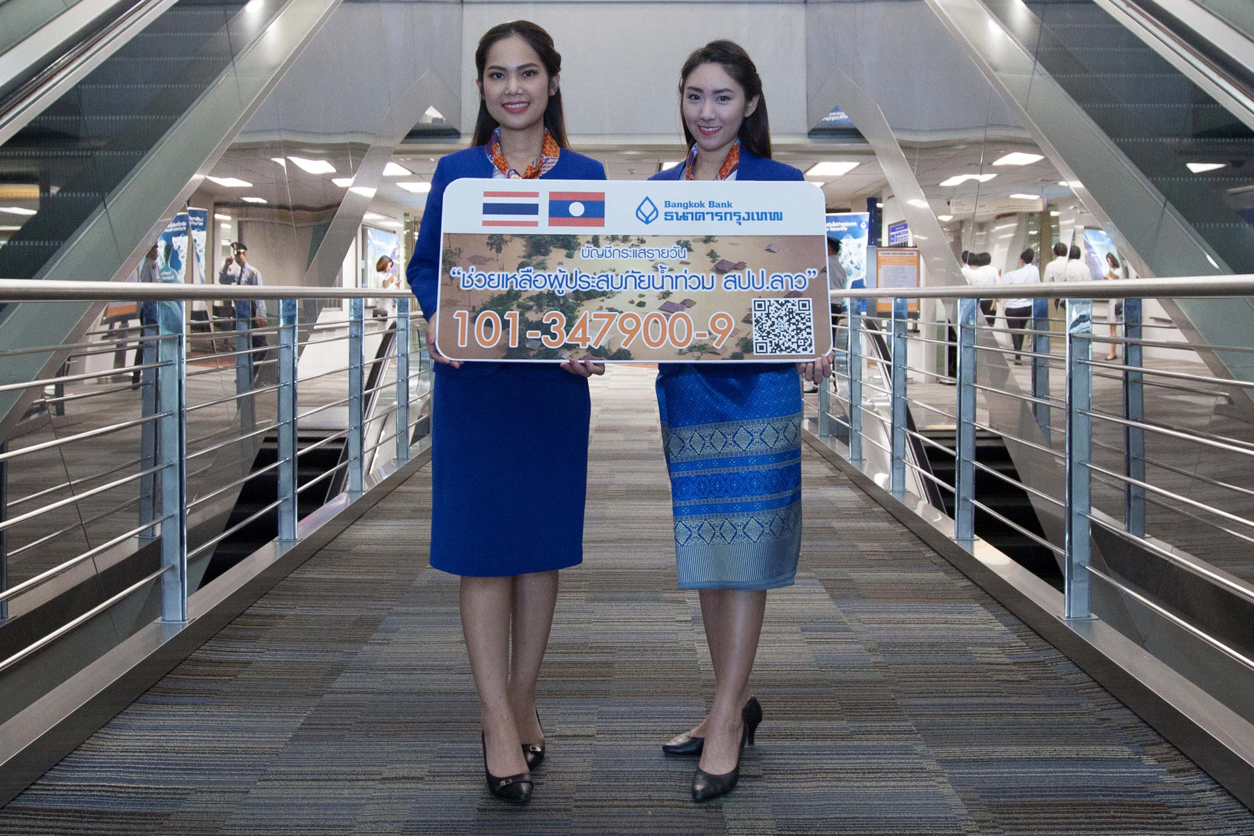 15 กรกฎาคม 2561 : ธนาคารกรุงเทพ จำกัด (มหาชน) ดำเนินการเปิดบัญชีกระแสรายวันชื่อ “ช่วยเหลือผู้ประสบภัยน้ำท่วม สปป.ลาว” เลขที่ 101-3-47900-9 สำนักงานใหญ่สีลม เพื่อรองรับการโอนเงินจากลูกค้าและประชาชนทั่วไป เพื่อช่วยเหลือผู้ประสบภัยน้ำท่วมหนักในแขวงอัตตะปือและแขวงจำปาสัก สปป.ลาว ที่ส่งผลให้ประชาชนในพื้นที่ได้รับความเดือดร้อน ทั้งในด้านการคมนาคมและด้านความเป็นอยู่ ผ่านช่องทางต่างๆ ของธนาคาร ประกอบด้วย เคาน์เตอร์สาขาทั่วประเทศ ตู้เอทีเอ็ม BeSure QR ผ่านพร้อมเพย์ เครื่องรับฝากเงินสดอัตโนมัติ (CDM) บัวหลวง ไอแบงก์กิ้ง (ธนาคารทางอินเทอร์เน็ต) และบัวหลวง เอ็มแบงก์กิ้ง (ธนาคารทางมือถือ)
