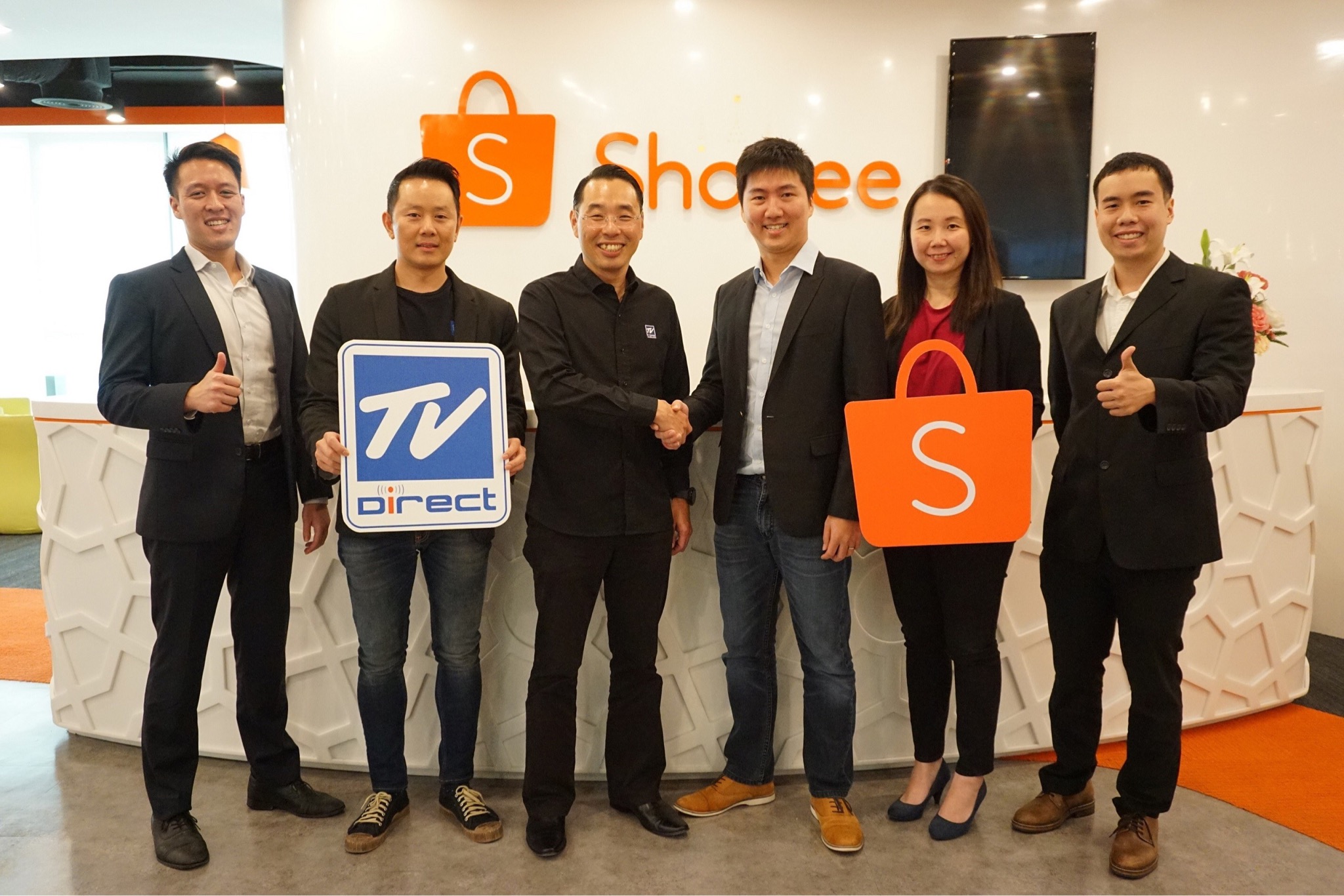 8 สิงหาคม 2561 : นายทรงพล ชัญมาตรกิจ (ที่ 3 จากซ้าย) ประธานเจ้าหน้าที่บริหาร บริษัท ทีวีไดเร็ค จำกัด (มหาชน) หรือ TVD เข้าพบ มร.เทเรนซ์ แพง (ที่ 4 จากซ้าย) ประธานฝ่ายปฏิบัติการช้อปปี้ เพื่อร่วมมือเป็นพันธมิตรทางธุรกิจในการเสริมศักยภาพการจำหน่ายสินค้าของ ทีวี ไดเร็ค ผ่านช่องทางของ Shopee โดยการเปิดร้านค้าออนไลน์ รวมถึงการจัดทำโปรโมชั่นส่งเสริมการขายผ่านสื่อสังคมออนไลน์ของ Shopee ในทุกช่องทาง เช่น Website, Facebook, Line เจาะกลุ่ม Online Market Place ที่จะช่วยเพิ่มโอกาสการเข้าถึงผู้บริโภคได้มากยิ่งขึ้น ![]()