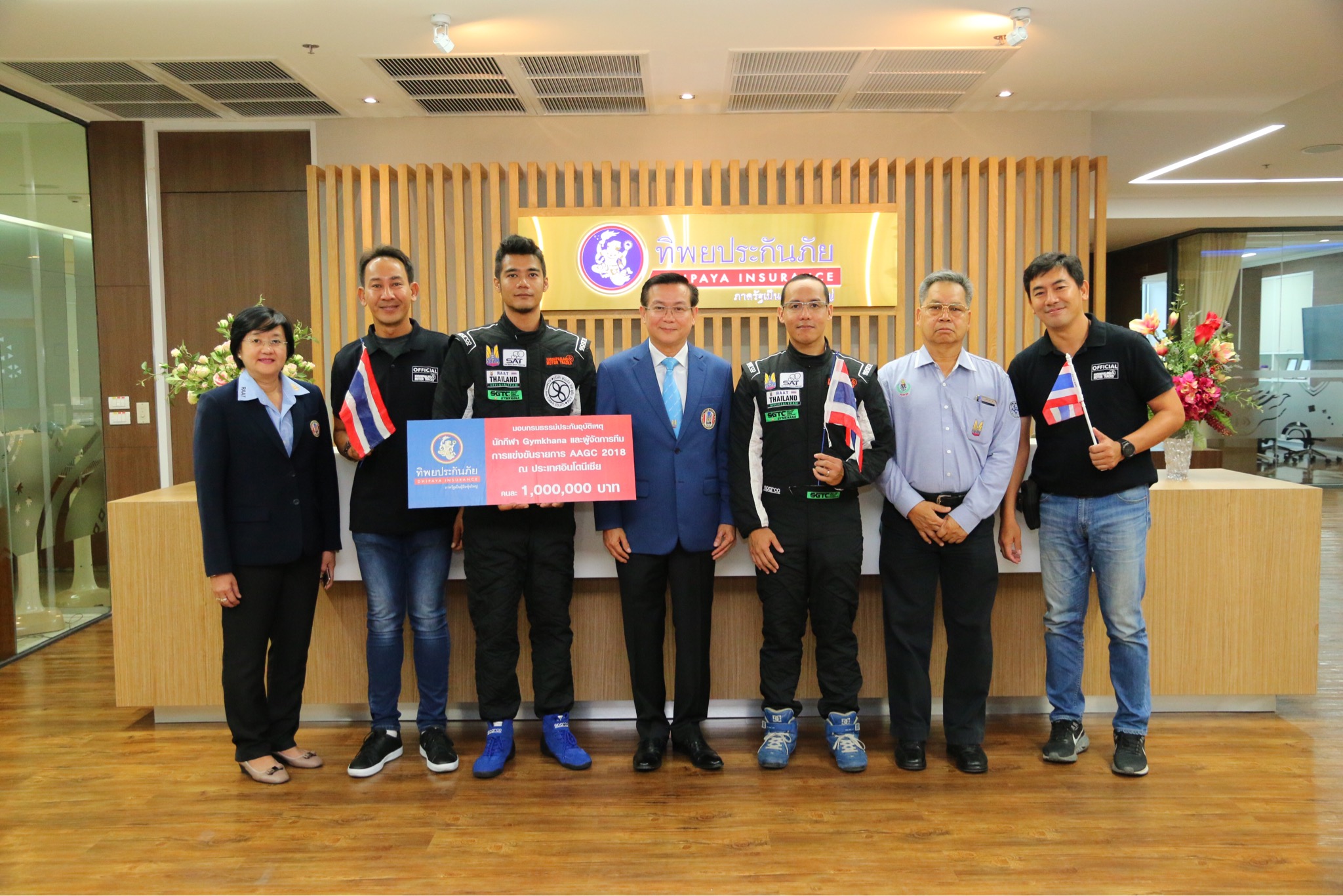 8 สิงหาคม 2561 : ดร.สมพร สืบถวิลกุล กรรมการผู้จัดการใหญ่ ทิพยประกันภัย ให้การต้อนรับทีมนักแข่งรถ GYMKHANA พร้อมมอบกรมธรรม์ประกันอุบัติเหตุส่วนบุคคลจำนวน 8 คน ทุนประกันภัยรวม 8,000,000 บาท เพื่อเป็นขวัญและกำลังใจในโอกาสที่นักแข่งรถเป็นตัวแทนของประเทศไทย ไปร่วมแข่งขันระดับนานาชาติ ในรายการ AAGC 2018 ที่ประเทศอินโดนีเซีย ระหว่างวันที่ 10-11 สิงหาคม 2561 ![]()