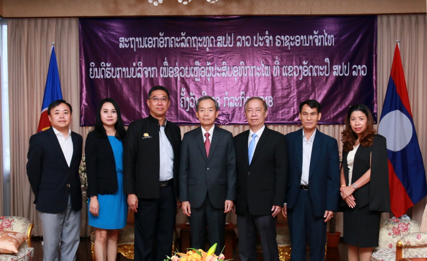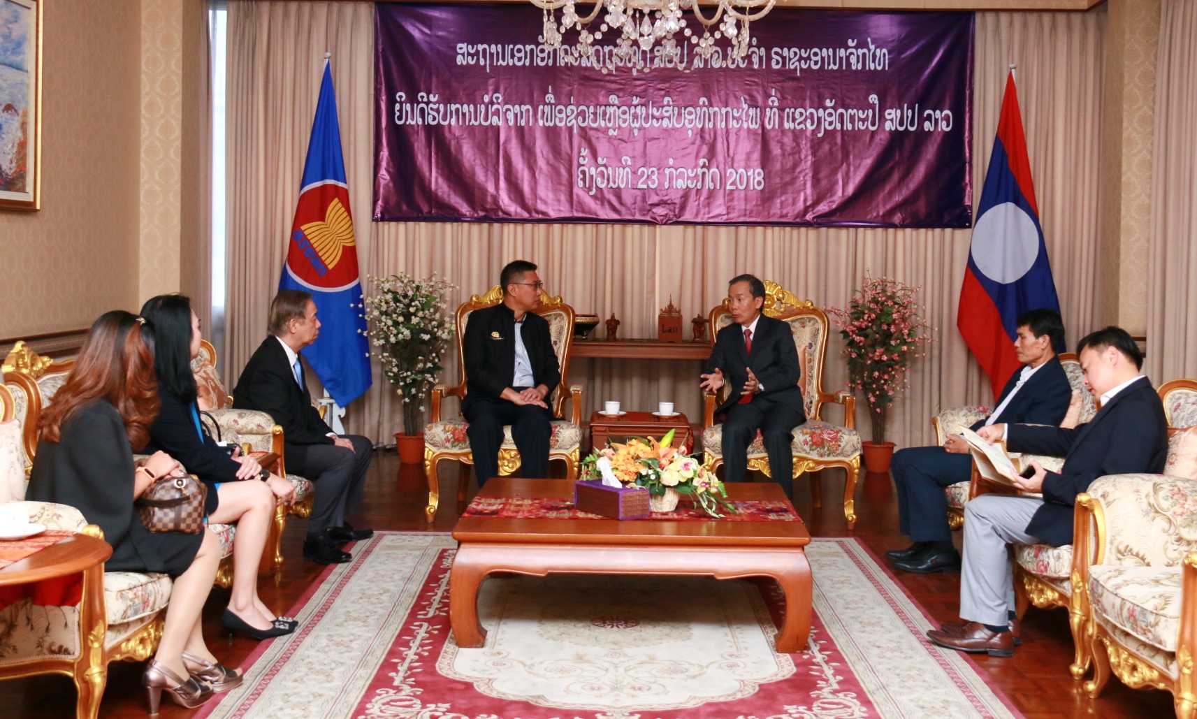 10 สิงหาคม 2561 : กี่เดช อนันต์ศิริประภา ผู้อำนวยการบริหาร สมาคมประกันวินาศภัยไทย มอบเงินช่วยเหลือ จำนวน 50,000 บาท แก่ผู้ประสบภัยจากเหตุการณ์เขื่อนเซเปียน – เซน้ำน้อยแตก ที่แขวงอัตตะปือ ผ่านทางสถานเอกอัครรัฐทูตสาธารณรัฐประชาธิปไตยประชาชนลาว ประจำราชอาณาจักรไทย โดยมี ฯพณฯ แสง สุขะทิวง เอกอัครรัฐทูตสาธารณรัฐประชาธิปไตยประชาชนลาว เป็นผู้รับมอบ ณ สถานทูตลาวประจำประเทศไทย ถนนประชาอุทิศ เมื่อเร็วๆ นี้ ![]()