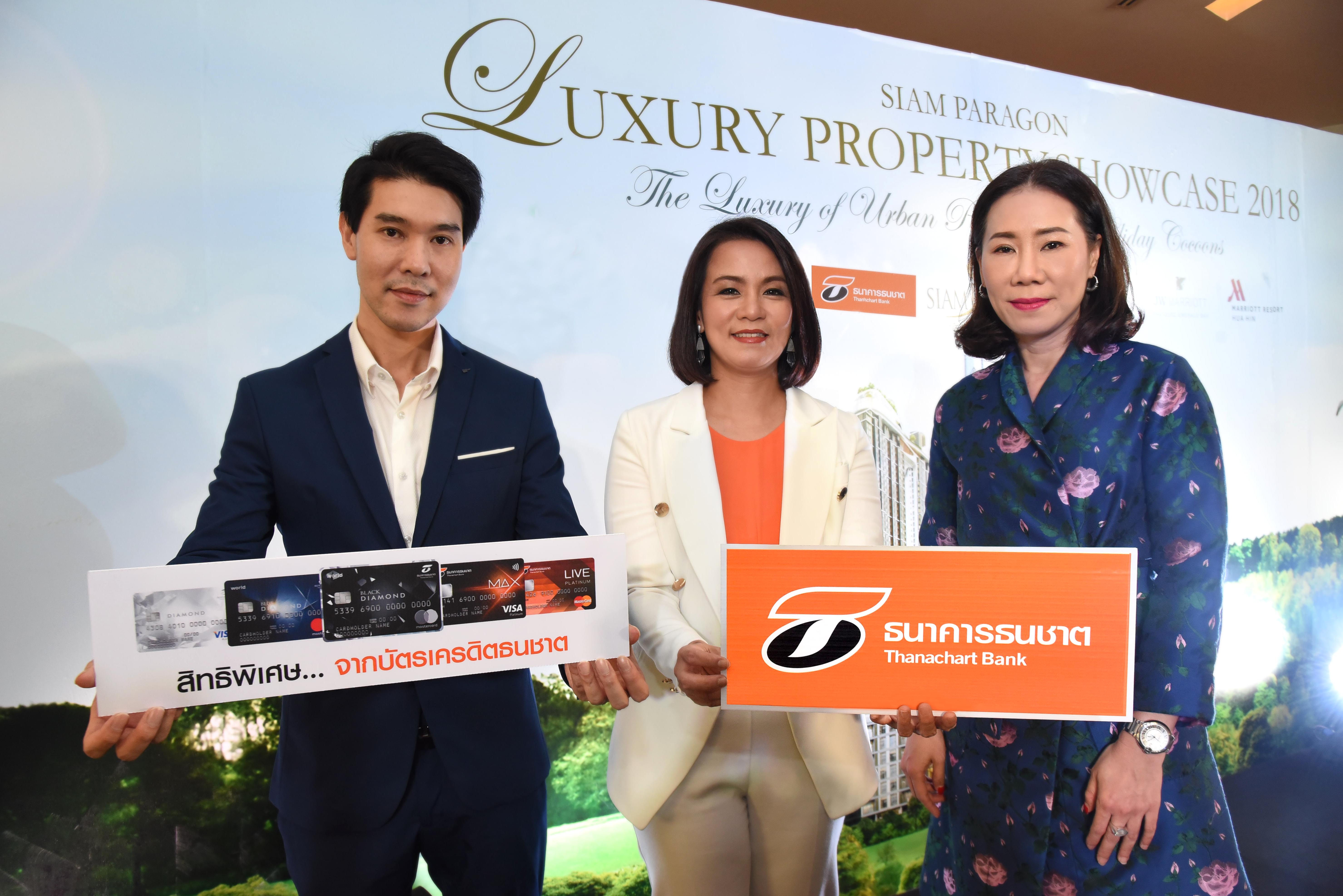 24 สิงหาคม 2561 : นางธีรนารถ พ่วงมหา (ที่ 2 จากซ้าย) ผู้อำนวยการอาวุโส ผลิตภัณฑ์บัตรเครดิตและสินเชื่อส่วนบุคคล ธนาคารธนชาต จำกัด (มหาชน) ร่วมกับ นางสาวชนิสา แก้วเรือน (ที่ 3 จากซ้าย) รองกรรมการผู้จัดการอาวุโส สายงานกิจกรรมการตลาดและธุรกิจสัมพันธ์ บริษัท สยามพิวรรธน์ จำกัด มอบสิทธิพิเศษให้ลูกค้าผู้ถือบัตรเครดิตธนชาต ในงาน “สยามพารากอน ลักซ์ชัวรี่ พร็อพเพอร์ตี้ โชว์เคส 2018” (Siam Paragon Luxury Property Showcase 2018)