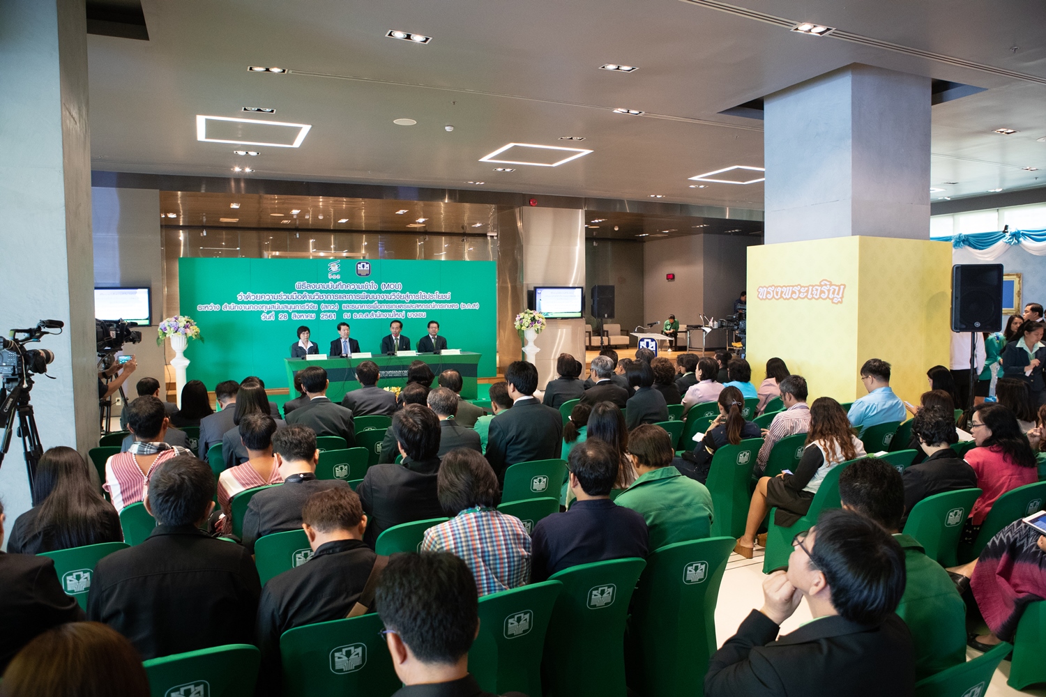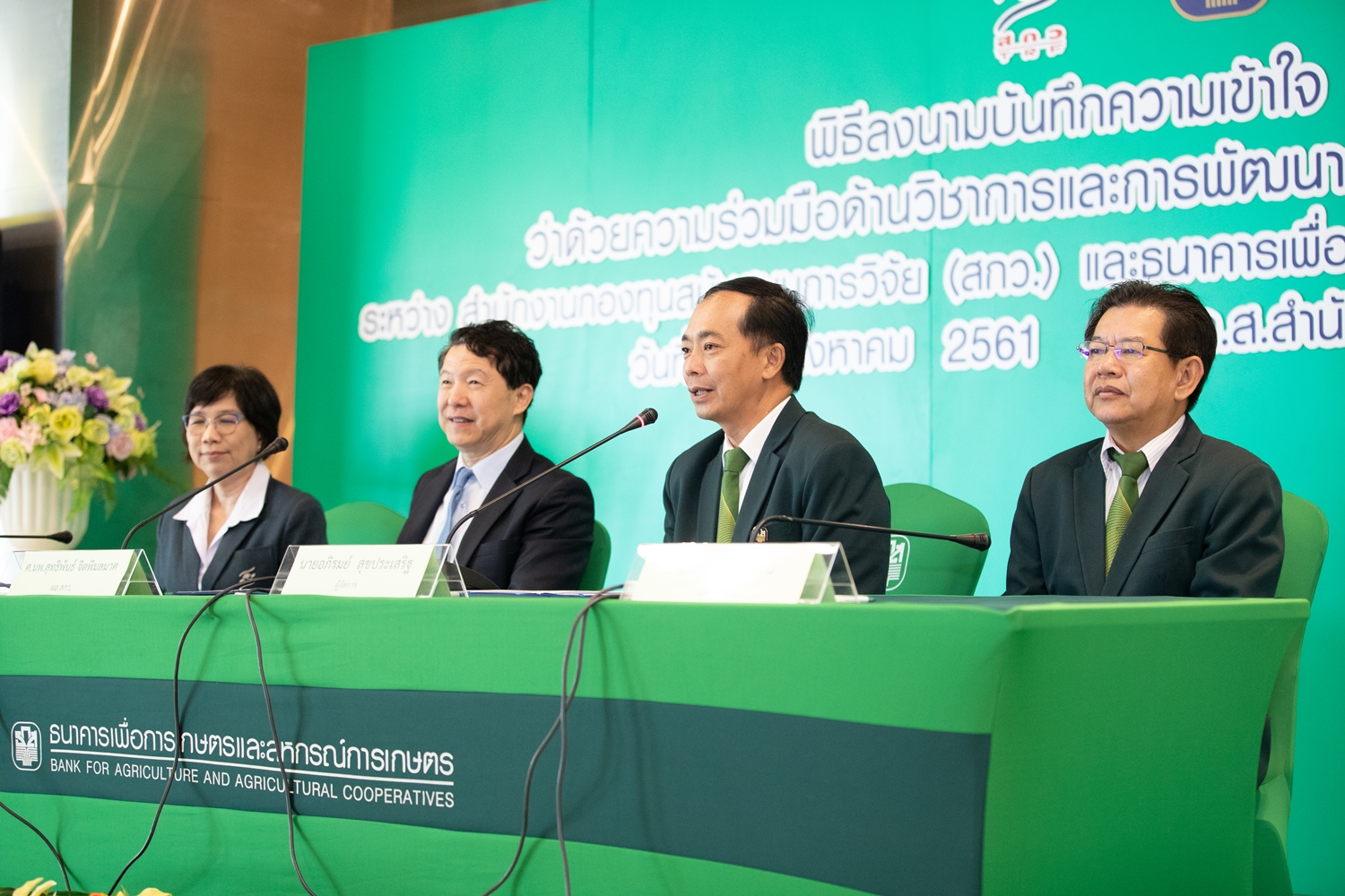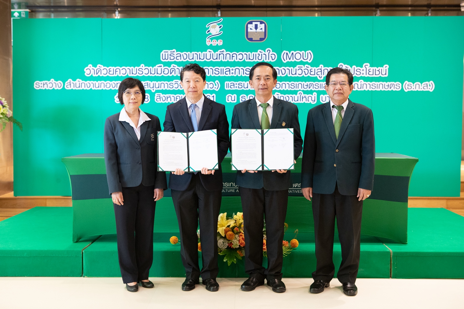 28 สิงหาคม 2561 : นายอภิรมย์ สุขประเสริฐ ผู้จัดการ ธนาคารเพื่อการเกษตรและสหกรณ์การเกษตร (ธ.ก.ส.) ลงนามบันทึกข้อตกลงความเข้าใจว่าด้วย “ความร่วมมือด้านวิชาการและการพัฒนางานวิจัยสู่การใช้ประโยชน์” กับสำนักงานกองทุนสนับสนุนการวิจัย (สกว.) เพื่อเสริมสร้างความร่วมมือทางวิชาการ พัฒนางานวิจัยและนวัตกรรมเพื่อพัฒนาเศรษฐกิจฐานราก โดยยึดหลักปรัชญาของเศรษฐกิจพอเพียง และเป้าหมายการพัฒนาที่ยั่งยืน (SDGs)