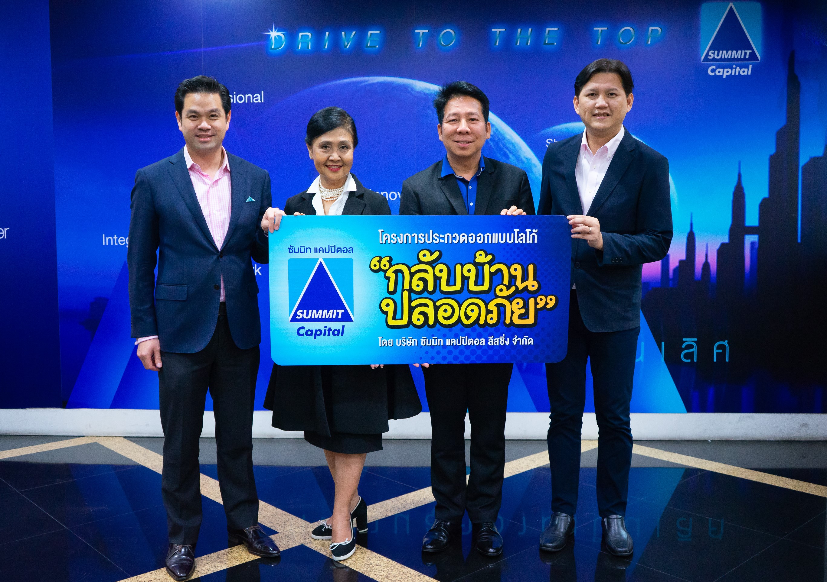 11 กันยายน 2561 : วิชิต พยุหนาวีชัย (ที่ 2 จากขวา) ประธานเจ้าหน้าที่บริหาร บริษัท ซัมมิท แคปปิตอล ลีสซิ่ง จำกัด เชิญชวนนักเรียน นักศึกษา และประชาชนทั่วไปส่งผลงานเข้าร่วมการประกวดออกแบบตราสัญลักษณ์ โครงการ “กลับบ้านปลอดภัย” ชิงเงินรางวัลมูลค่ารวมกว่า 120,000 บาท พร้อมโล่ประกาศเกียรติคุณ พร้อมเผยโฉมหน้าคณะกรรมการตัดสิน