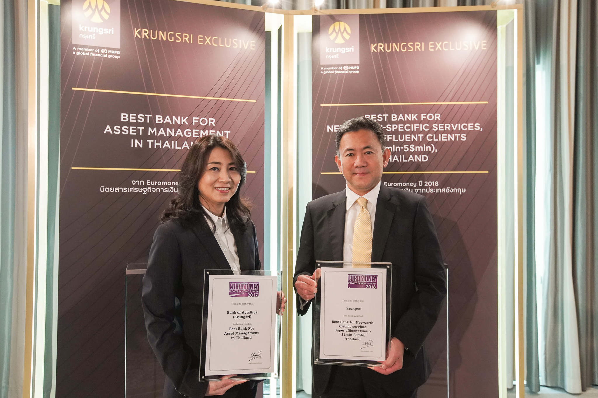 กรุงศรี เอ็กซ์คลูซีฟ ได้รับการยกย่องจาก Euromoney ติดต่อกันเป็นปีที่สอง โดยในปี 2560 ที่ผ่านมา กรุงศรี เอ็กซ์คลูซีฟ ได้รับรางวัล Best Bank for Asset Management in Thailand 2017 และยังคงเดินหน้าเพื่อยกระดับผลิตภัณฑ์และบริการต่างๆ เพื่อลูกค้า ![]()