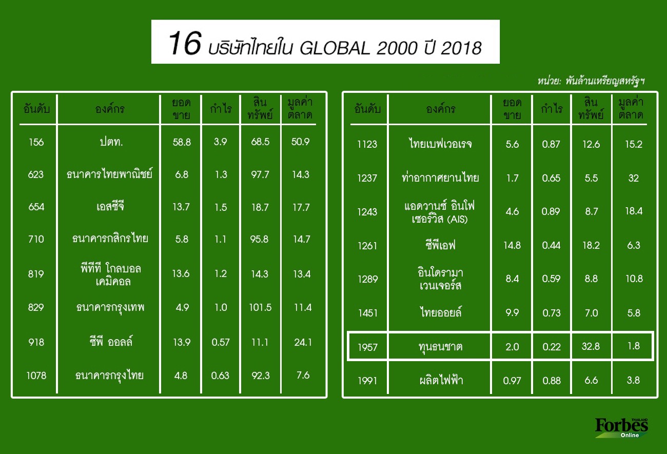 17 กันยายน 2561 : นายศุภเดช พูนพิพัฒน์ ประธานกรรมการบริหาร บริษัท ทุนธนชาต จำกัด (มหาชน) กล่าวว่า จากการที่บริษัททุนธนชาตเป็น 1 ใน 16 บริษัทจดทะเบียนรายใหญ่ที่สุดของไทย ที่ติดทำเนียบการจัดอันดับบริษัท จดทะเบียนที่ใหญ่ที่สุดในโลก จำนวน 2,000 บริษัทของ “ฟอร์บส์” นิตยสารธุรกิจและเศรษฐกิจชื่อดังของสหรัฐอเมริกาซึ่งเป็นการจัดอันดับที่ได้รับการยอมรับอย่างกว้างขวางไปทั่วโลก