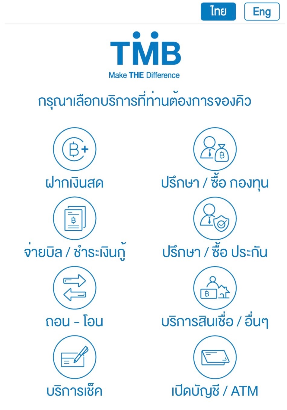 8 ตุลาคม 2561 : ทีเอ็มบี แนะนำ “SmartQ” บริการใหม่ล่าสุด สำหรับลูกค้าที่ต้องการจองคิวผู้เชี่ยวชาญ เพื่อขอรับคำปรึกษาด้านการวางแผนภาษี จองใช้บริการได้ทันที ไม่ต้องไปรอคิวที่สาขา เพียงแอดไลน์ TMB แล้วกดปุ่ม Menu “SmartQ บริการจองคิวออนไลน์” หรือเข้าจาก www.tmb.com/Q
