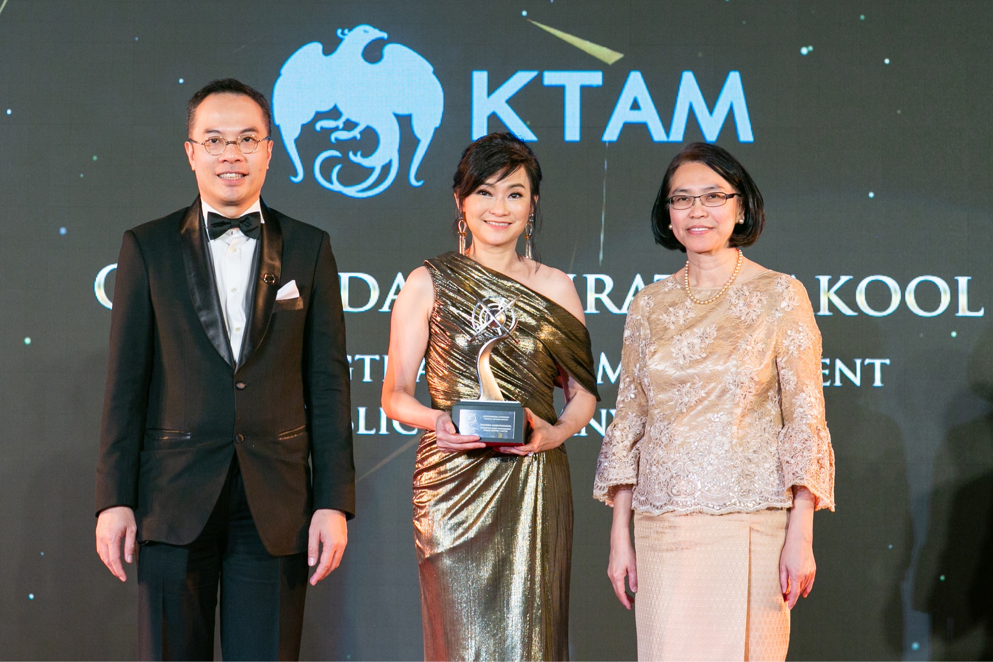 10 ตุลาคม 2561 : นางชวินดา หาญรัตนกูล (กลาง) กรรมการผู้จัดการ บริษัทหลักทรัพย์จัดการกองทุน กรุงไทย จำกัด (มหาชน) หรือ KTAM รับรางวัล Asia Pacific Entrepreneurship Awards 2018 Thailand(APEA 2018 ) ในฐานะผู้นำองค์กรธุรกิจดีเด่นของภูมิภาคเอเชียแปซิฟิก สาขา Financial Services Industry จากนางสาวชุติมา บุณยประภัศร (ขวา) รัฐมนตรีช่วยว่าการกระทรวงพาณิชย์ และนายดาโต๊ะ วิลเลี่ยม เอิง (ซ้าย) ประธาน เอ็นเตอร์ไพรส์ เอเซีย ในงาน Asia Pacific Entrepreneurship Award 2018 ณ ห้องเบญจสิริแกรนด์ บอลรูม โรงแรมแมริออท กรุงเทพฯ สุขุมวิท เมื่อเร็วๆนี้ ![]()