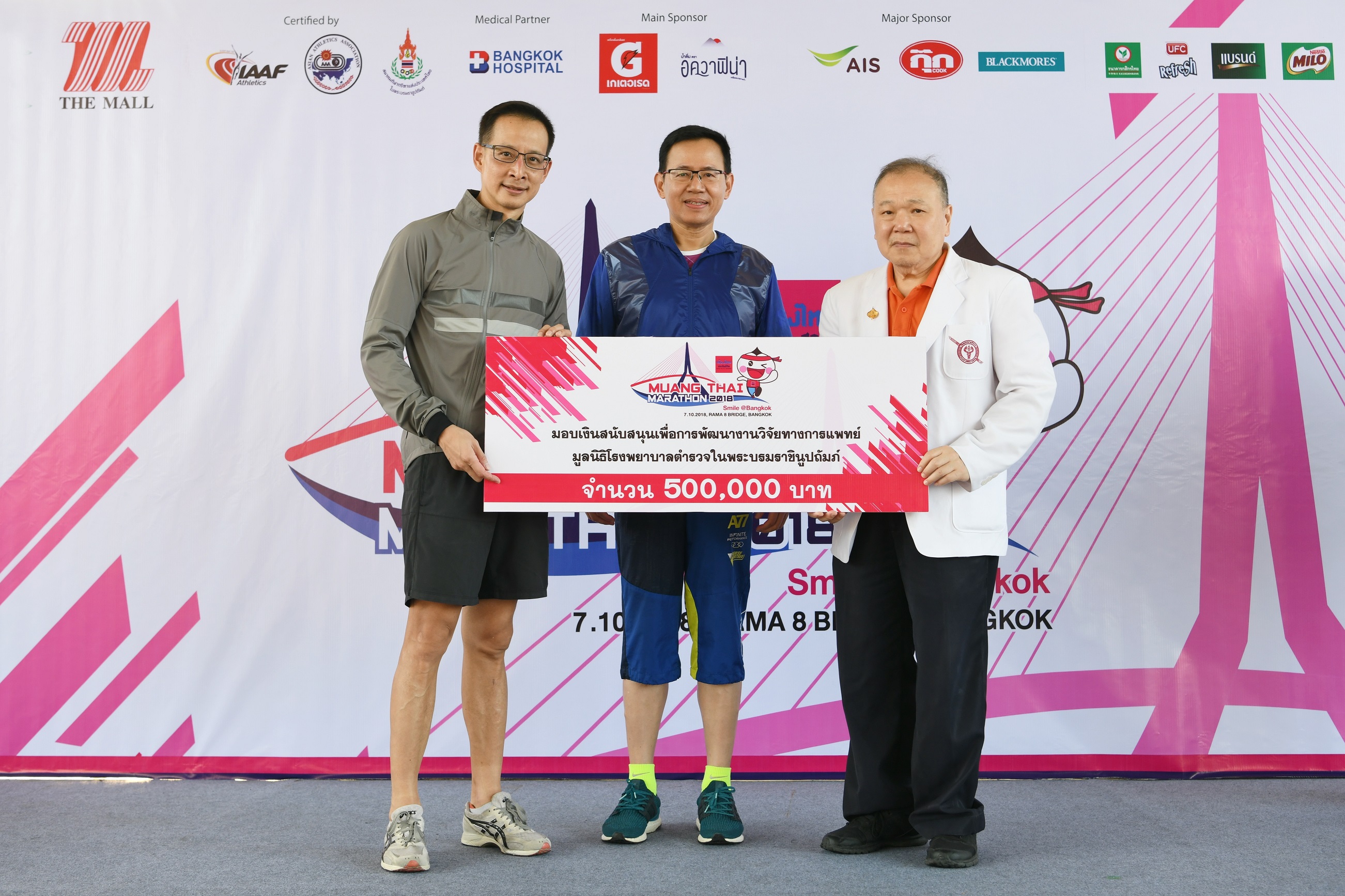 พร้อมได้รับเกียรติจาก ดร.สุทธิพล ทวีชัยการ เลขาธิการคณะกรรมการกำกับและส่งเสริมการประกอบธุรกิจประกันภัย (กลาง) ร่วมในพิธี โดยจัดขึ้นภายในงาน “เมืองไทยมาราธอน 2018 Smile @ Bangkok” ณ สะพานพระราม 8 กรุงเทพมหานคร เมื่อเร็วๆ นี้ ![]()