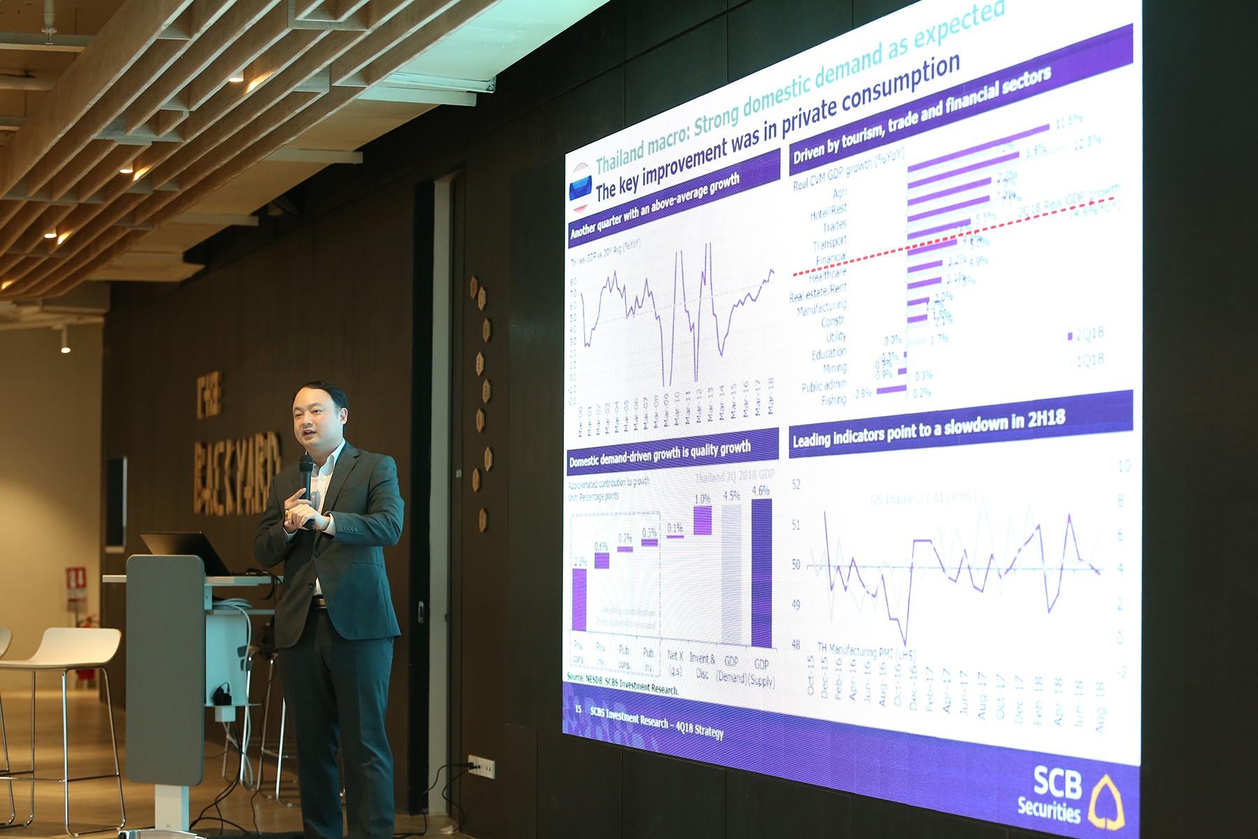 ทั้งนี้ SCBS คาดว่า SET อาจมีการพักฐานตามปัจจัยเสี่ยงภายนอกประเทศ แต่จะปรับตัวขึ้นได้ตามปัจจัยพื้นฐานในประเทศซึ่งดีต่อเนื่องไปในปี 2562 โดยมองหุ้นกลุ่มที่ได้ประโยชน์จากอัตราการใช้กำลังการผลิตที่เริ่มตึงตัวซึ่งนำไปสู่การลงทุนภาคเอกชนและเม็ดเงินลงทุนโดยตรงจากต่างประเทศ (FDI) จะให้ผลตอบแทนที่ดีตามปัจจัยพื้นฐาน