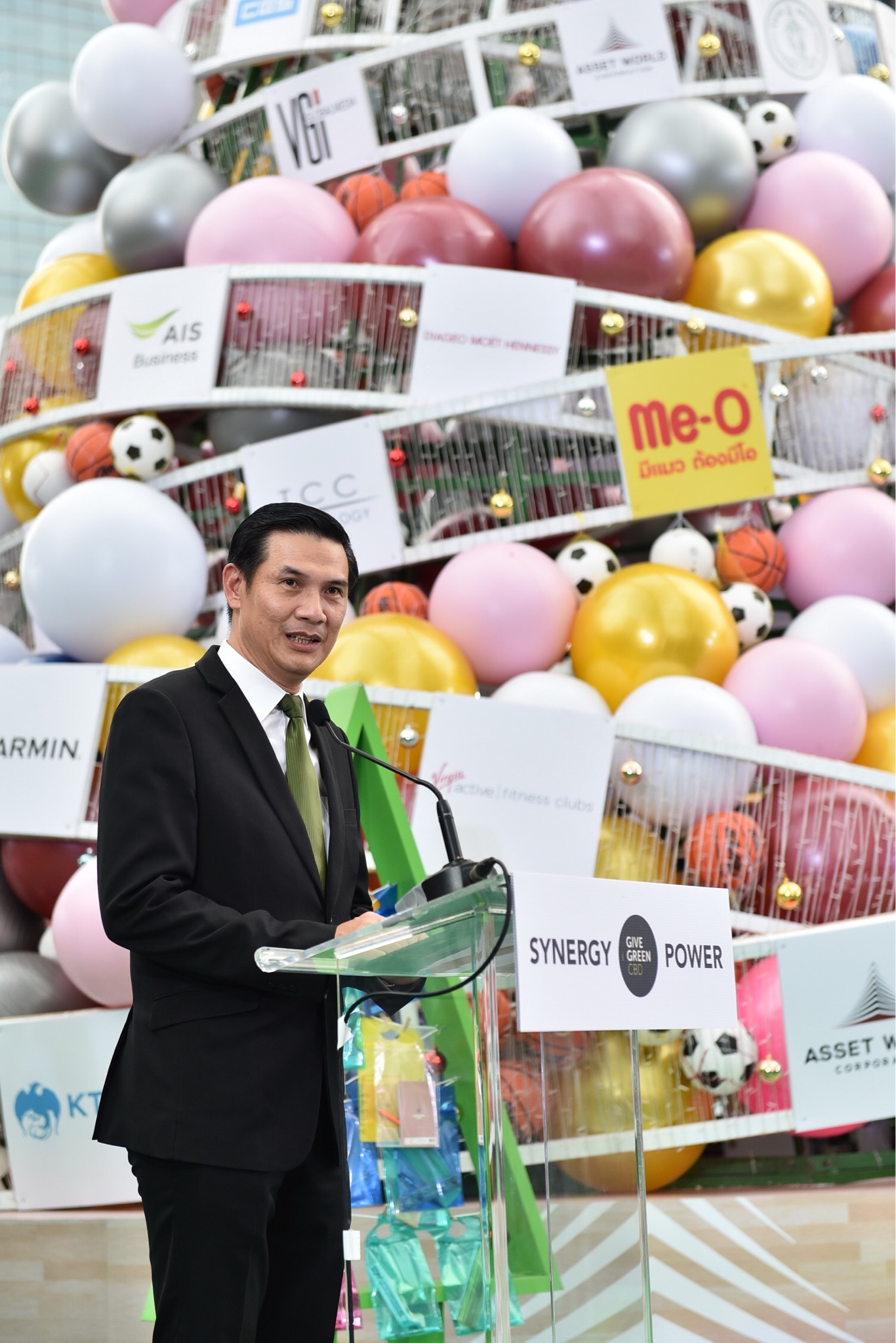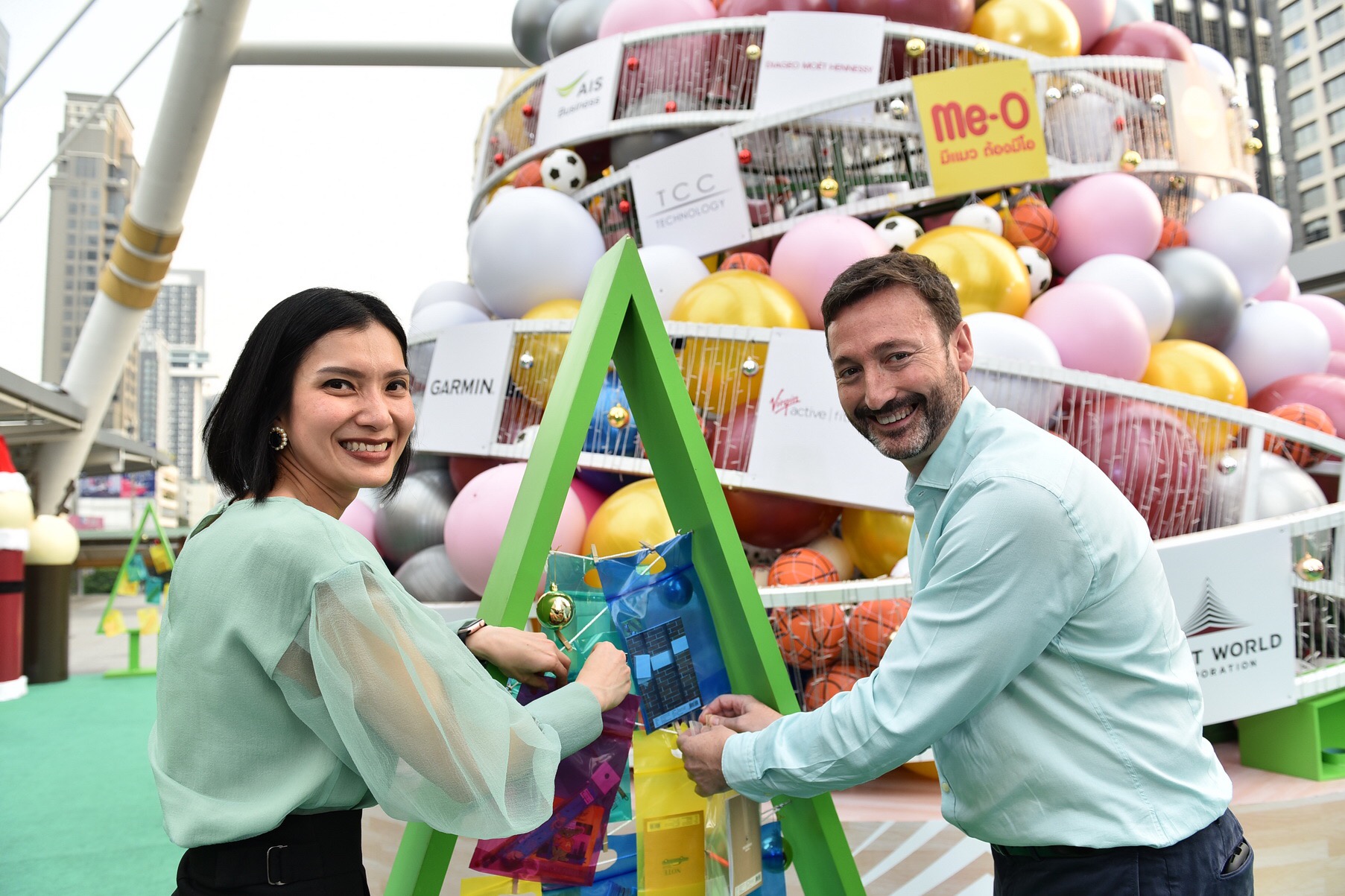 โดยการประดับต้นคริสต์มาสบนใจกลางเมืองด้วย ลูกฟุตบอล ลูกบาส ลูกวอลเลย์บอล ลูกบอลโยคะ รวมกว่า 1,500 ลูก อุปกรณ์กีฬาเหล่านี้จะถูกนำไปสร้างประโยชน์ต่อ ด้วยการส่งมอบให้กับเยาวชนในโรงเรียนที่ขาดแคลน จำนวน 6 โรงเรียน ในอำเภอท่ายาง จังหวัดเพชรบุรี ซึ่งภายในงานได้รับเกียรติจาก คุณชาตรี วัฒนเขจร – รองผู้อำนวยการสำนักสิ่งแวดล้อม กรุงเทพมหานคร เป็นประธานเปิดงาน