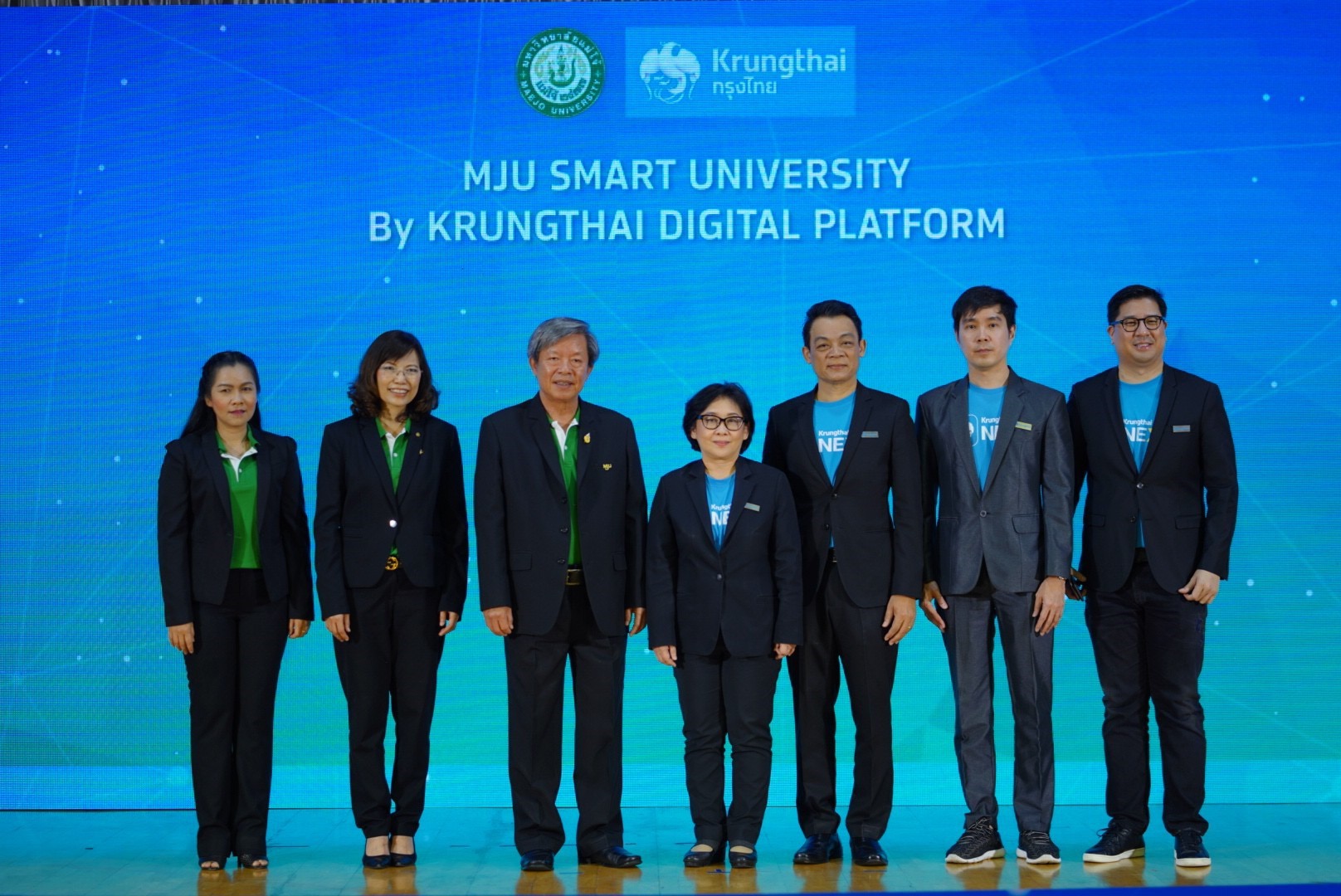 23 พฤศจิกายน 2561 : นางอรนุช ศิรประภา ผู้ช่วยกรรมการผู้จัดการใหญ่อาวุโส สายงานกลยุทธ์และผลิตภัณฑ์รายย่อย ธนาคารกรุงไทยและ ศาสตราจารย์ ดร.จำเนียร ยศราช อธิการบดี มหาวิทยาลัยแม่โจ้ ร่วมแถลงข่าวความร่วมมือการให้บริการจัดการทางการเงินผ่านระบบ Krungthai Digital Platform ในโครงการ MJU Smart University ที่มหาวิทยาลัยแม่โจ้