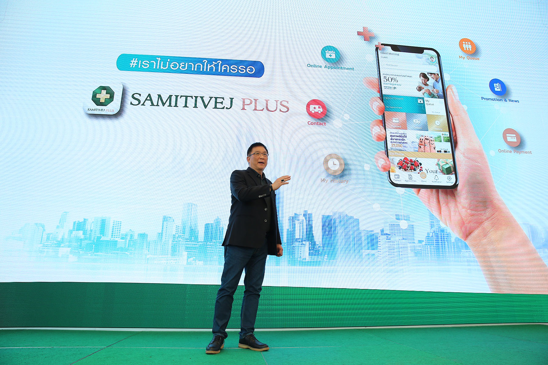 ทั้งหมดนี้แสดงให้เห็นถึงการเป็นผู้นำด้านนวัตกรรมของสมิติเวช ที่ผสานนวัตกรรมซึ่งวิเคราะห์จาก Pain Point ของผู้ใช้บริการ มารวมกันไว้ใน Smart Phone รูปแบบ Mobile Health ภายใต้คอนเซปต์ #เราไม่อยากให้ใครห่วง ![]()