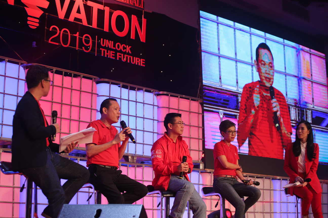 โดยแบ่งกลุ่มพนักงานเป็นกลุ่มๆ ร่วมนำเสนอไอเดียกันอย่างเข้มข้นและสนุกสนาน เพื่อหาสุดยอดนวัตกรรมที่จะสามารถพัฒนาให้เจนเนอราลี่ ไทยแลนด์ ก้าวสู่เป้าหมายด้วยความแข็งแกร่งและมีศักยภาพในการแข่งขันมากยิ่งขึ้น ถือเป็นมิติใหม่ของการร่วมแสดงพลังความร่วมมือครั้งสำคัญของพนักงานเจนเนอราลี่ ไทยแลนด์ทุกคน นอกจากนี้ในงานผู้บริหารระดับสูงทั้ง 3 ท่านได้ให้นโยบายและแนวทางการทำงานในปี 2019 พร้อมกับเชิดชูเกียรติพนักงานดีเด่นและพนักงานที่มีอายุงานยาวนาน ณ ศูนย์การประชุมแห่งชาติสิริกิติ์ ![]()