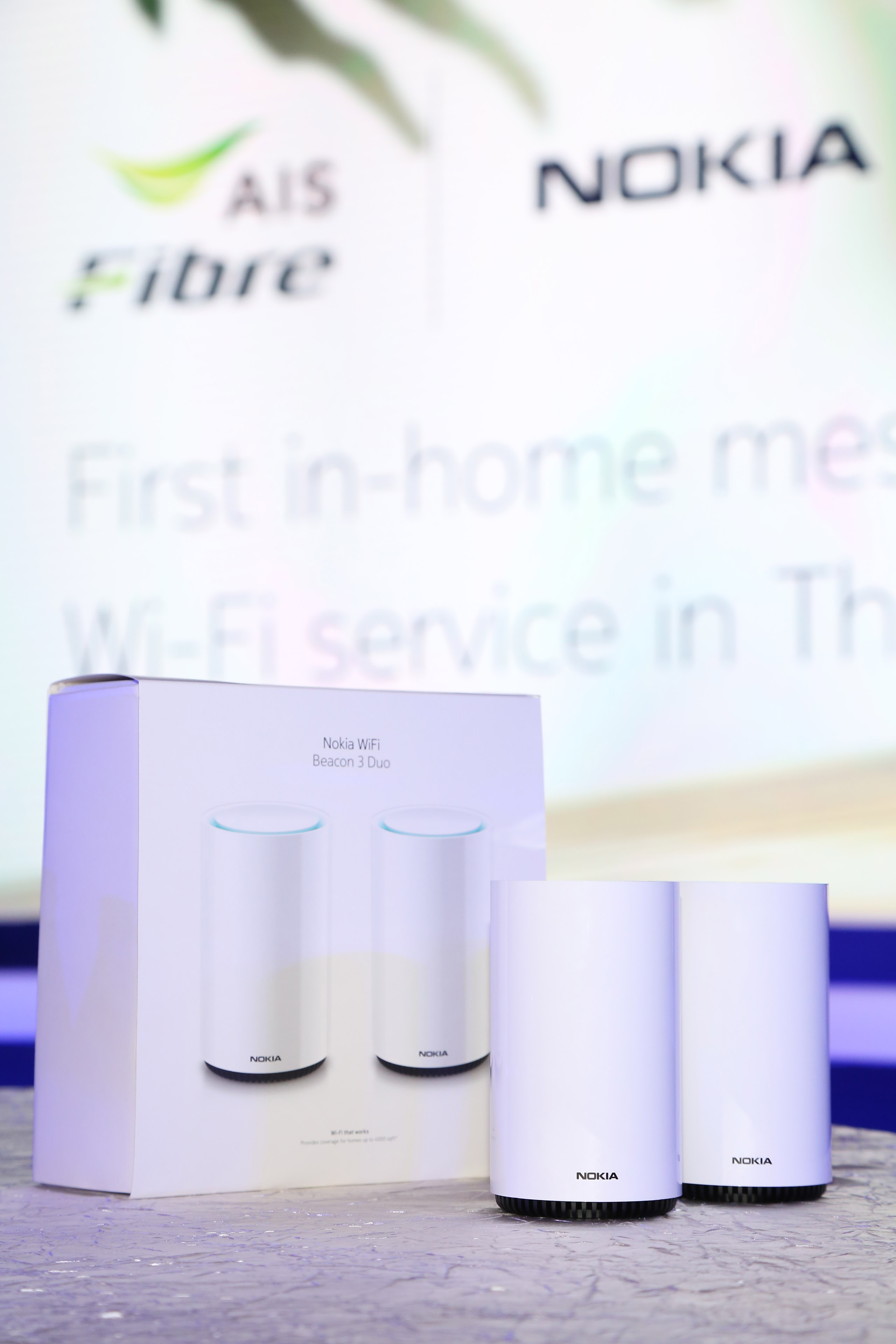 ล่าสุด AIS Fibre ตอกย้ำความเป็น Innovative Leader อีกครั้ง ด้วยการจับมือกับพันธมิตรระดับโลก Nokia ทำงานร่วมกันในเชิงลึก เพื่อศึกษาและทดสอบอุปกรณ์ Mesh WiFi สำหรับตลาดในเมืองไทย เพื่อยกระดับประสบการณ์การใช้งานของลูกค้าไปอีกขั้น โดยร่วมกันเปิดตัวผลิตภัณฑ์ใหม่แบบเอ็กซ์คลูซีฟ เป็นรายแรกของโลกกับ “NOKIA WiFi Beacon 3” อุปกรณ์เสริมเราเตอร์ระดับพรีเมี่ยม เพื่อเป็นทางเลือกใหม่ให้กับลูกค้า ทำให้การเชื่อมต่อราบรื่น ครอบคลุมทุกพื้นที่ในบ้าน”