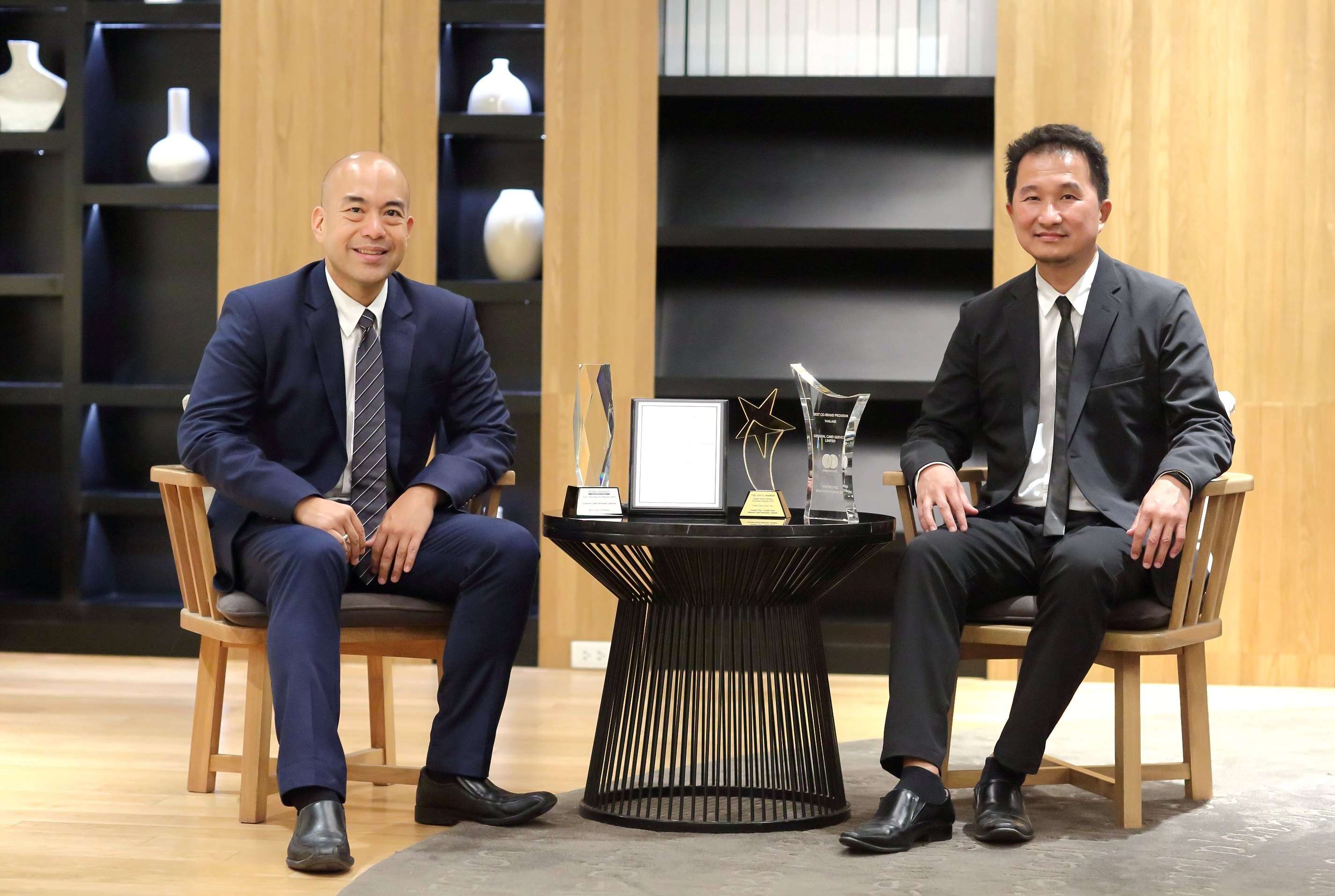 กรุงเทพฯ, 29 พฤศจิกายน 2561 : บัตรเครดิต เซ็นทรัล เดอะวัน นำโดย อธิศ รุจิรวัฒน์ (ซ้าย) กรรมการผู้จัดการ บริษัท เจเนอรัล คาร์ด เซอร์วิสเซส จำกัด รับ 4 รางวัลใหญ่ประเภทผลิตภัณฑ์บัตรเครดิตดีเด่นจากเวทีระดับภูมิภาค โดยมี ระวี พัวพรพงษ์ (ขวา) Head of The 1 Business บริษัท เซ็นทรัลรีเทลคอร์ปอเรชั่น จำกัด ร่วมแสดงความยินดี
