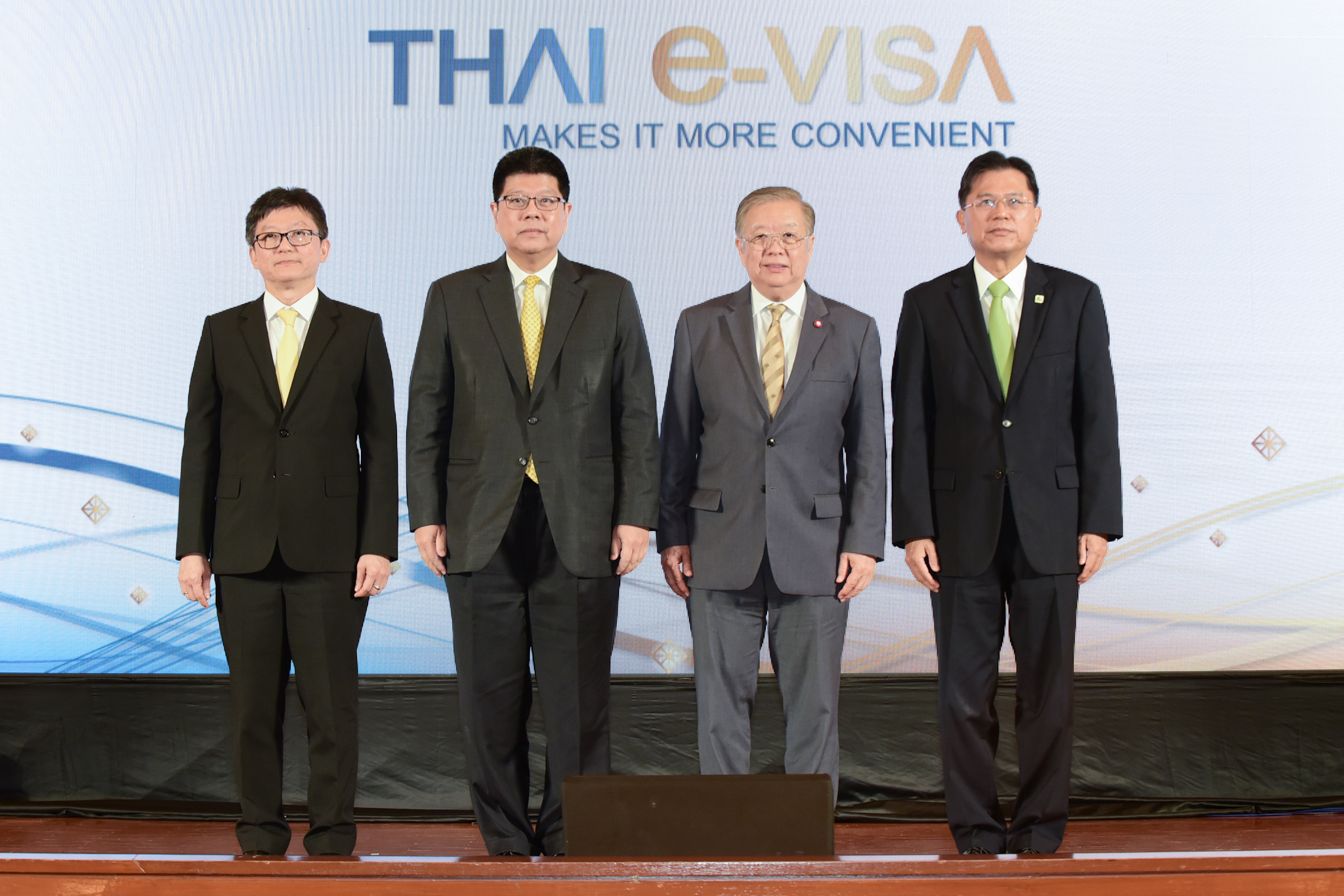 3 ธันวาคม 2561 : ชัยสิริ อนะมาน (ที่ 2 จากขวา) ที่ปรึกษารัฐมนตรีว่าการกระทรวงการต่างประเทศ, ชาตรี อรรจนานันท์ (ซ้าย) อธิบดีกรมการกงสุล กระทรวงการต่างประเทศ และ ปรีดี ดาวฉาย (ขวา) กรรมการผู้จัดการ ธนาคารกสิกรไทย เปิดตัวบริการ Thai e-Visa อำนวยความสะดวกให้ชาวต่างชาติขอวีซ่าบนออนไลน์ตั้งแต่การกรอกแบบฟอร์ม ยื่นเอกสาร พร้อมรับชำระค่าธรรมเนียมแบบอิเล็กทรอนิกส์ สะดวก ทุกที่ทุกเวลา บนระบบที่มีความปลอดภัยมาตรฐานโลก เปิดให้บริการ ต้นปี 2562 เริ่มให้บริการที่จีน อังกฤษ และฝรั่งเศส พร้อมตั้งเป้าหมายขยายสู่ทุกประเทศที่มีสถานเอกอัครราชทูตและสถานกงสุลใหญ่ไทยในต่างประเทศทั่วโลก ภายใน 3 ปี ณ กระทรวงการต่างประเทศ เมื่อเร็ว ๆ นี้ ![]()