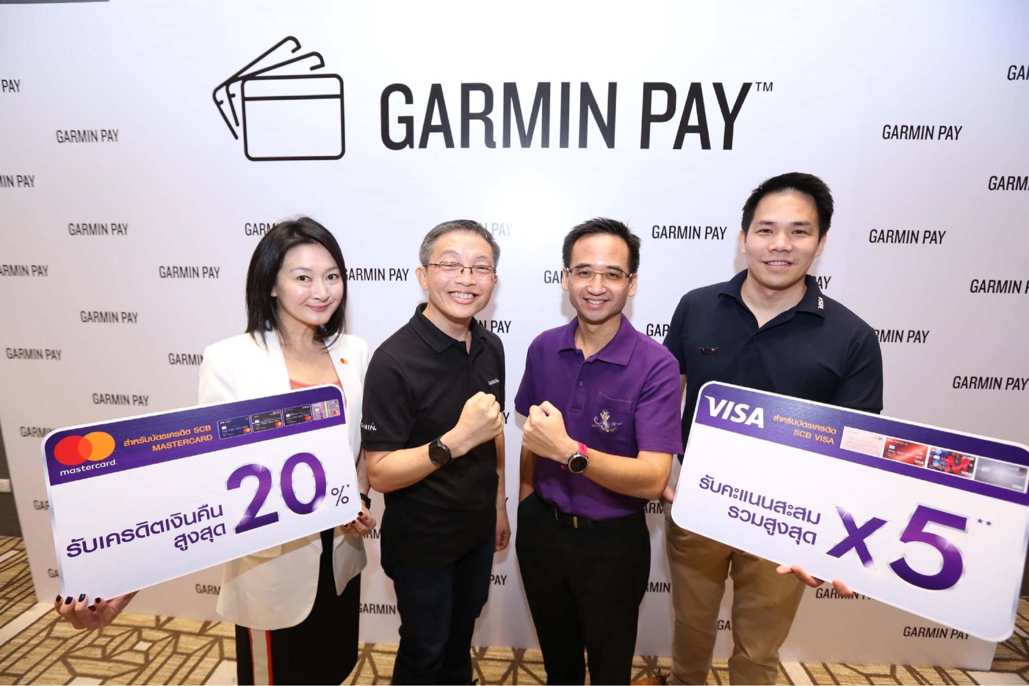 พร้อมด้วย มาสเตอร์การ์ด และวีซ่า คาร์ด ผู้ให้บริการด้านระบบชำระเงินชั้นนำระดับโลก เปิดตัว GARMIN Pay การชำระเงินรูปแบบใหม่บนนาฬิกาข้อมือสมาร์ตวอทช์ GARMIN โดยชำระเงินผ่านเวอร์ชวลเครดิตการ์ดไทยพาณิชย์มาสเตอร์การ์ด และเวอร์ชวลการ์ดไทยพาณิชย์วีซ่า ตอบโจทย์สาวกคนรักสุขภาพยุคใหม่ ที่ชื่นชอบการออกกำลังกาย หมดปัญหากับการพกกระเป๋าสตางค์ หรือสมาร์ทโฟน เพียงใส่นาฬิกาสมาร์ตวอทช์ GARMIN เรือนเดียวก็สามารถซื้อสินค้าได้อย่างปลอดภัย ณ ร้านค้าที่รองรับ PayWave และ PayPass