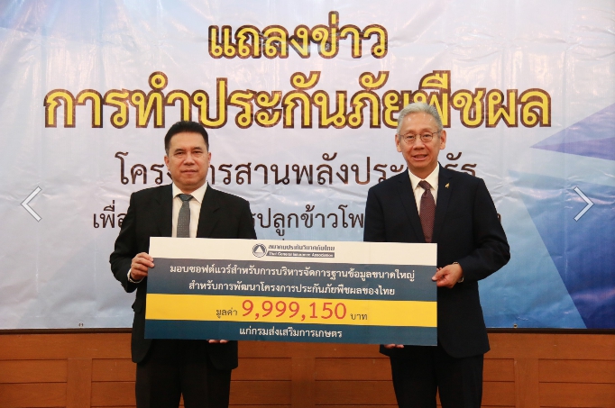 ในการนี้เพื่อให้กรมส่งเสริมการเกษตรซึ่งเป็นหน่วยงานสำคัญในการจัดทำระบบฐานข้อมูลสารสนเทศภาคการเกษตร สมาคมประกันวินาศภัยไทย จึงได้มอบซอฟต์แวร์สำหรับการบริหารจัดการฐานข้อมูลขนาดใหญ่ มูลค่ารวม 9,999,150 บาท ให้แก่กรมส่งเสริมการเกษตร โดยมีนายสำราญ สาราบรรณ์ อธิบดีกรมส่งเสริมการเกษตร เป็นผู้รับมอบ เพื่อนำไปใช้ประโยชน์ในการปรับปรุงระบบฐานข้อมูลให้มีประสิทธิภาพ รองรับปริมาณข้อมูลที่เพิ่มขึ้น และก่อให้เกิดการบูรณาการ Big Data ทั้งระบบ