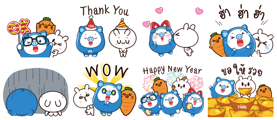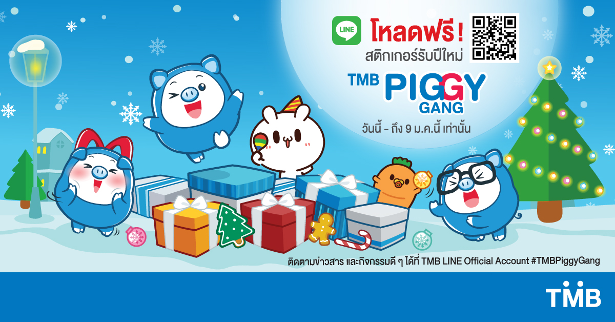 11 ธันวาคม 2561 : TMB PIGGY GANG กลับมาเพื่อต้อนรับปีหมู 2019 ที่จะถึงนี้ กับชุด “MORE Friends, MORE Fun” Return! (พิกกี้แก๊ง ชุด เพื่อนกันมันส์กว่าเดิม รีเทิร์น) โดยจับคู่กับนักออกแบบสติกเกอร์ LINE กระต่ายจอมกวน Moose the Rabbit และ Baby Carrot ที่มาพร้อมความสนุกเช่นเคย ให้ผู้ใช้ LINE ดาวน์โหลดได้ฟรี ตั้งแต่วันที่ 11 ธันวาคม เป็นต้นไป ที่ http://bit.ly/2rrITLv