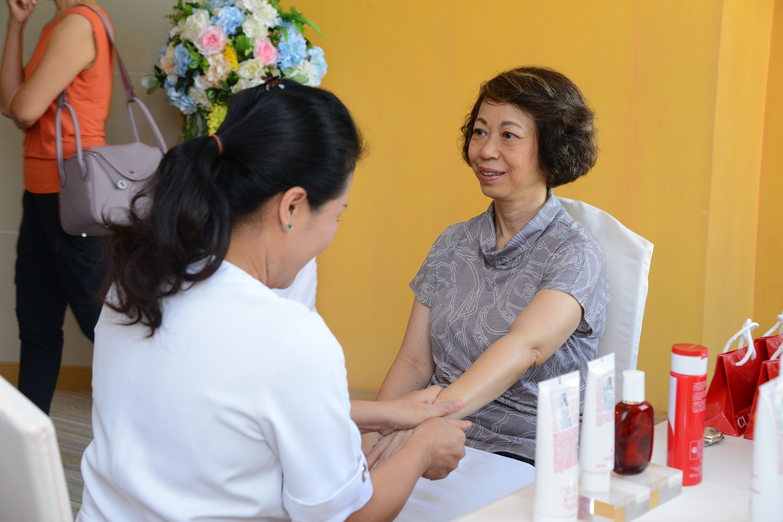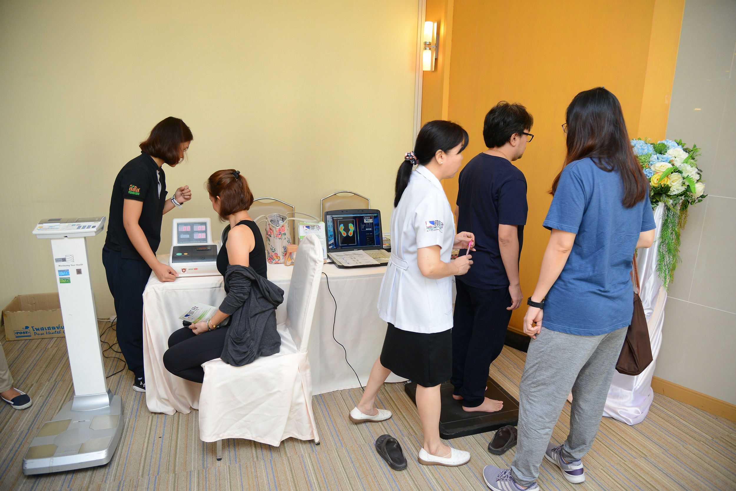 โดยผู้เข้าร่วมกิจกรรม จะได้รับการตรวจวัดค่าองค์ประกอบในร่างกาย (BMI) วัดความดัน และตรวจโครงสร้างเท้า เพื่อประเมินความสมบูรณ์ของร่างกาย รับบริการสปามือ ผ่อนคลายความเมื่อยล้า พร้อมฟังเคล็บลับการดูแลผิวพรรณจากเครื่องสำอาง Clarins
