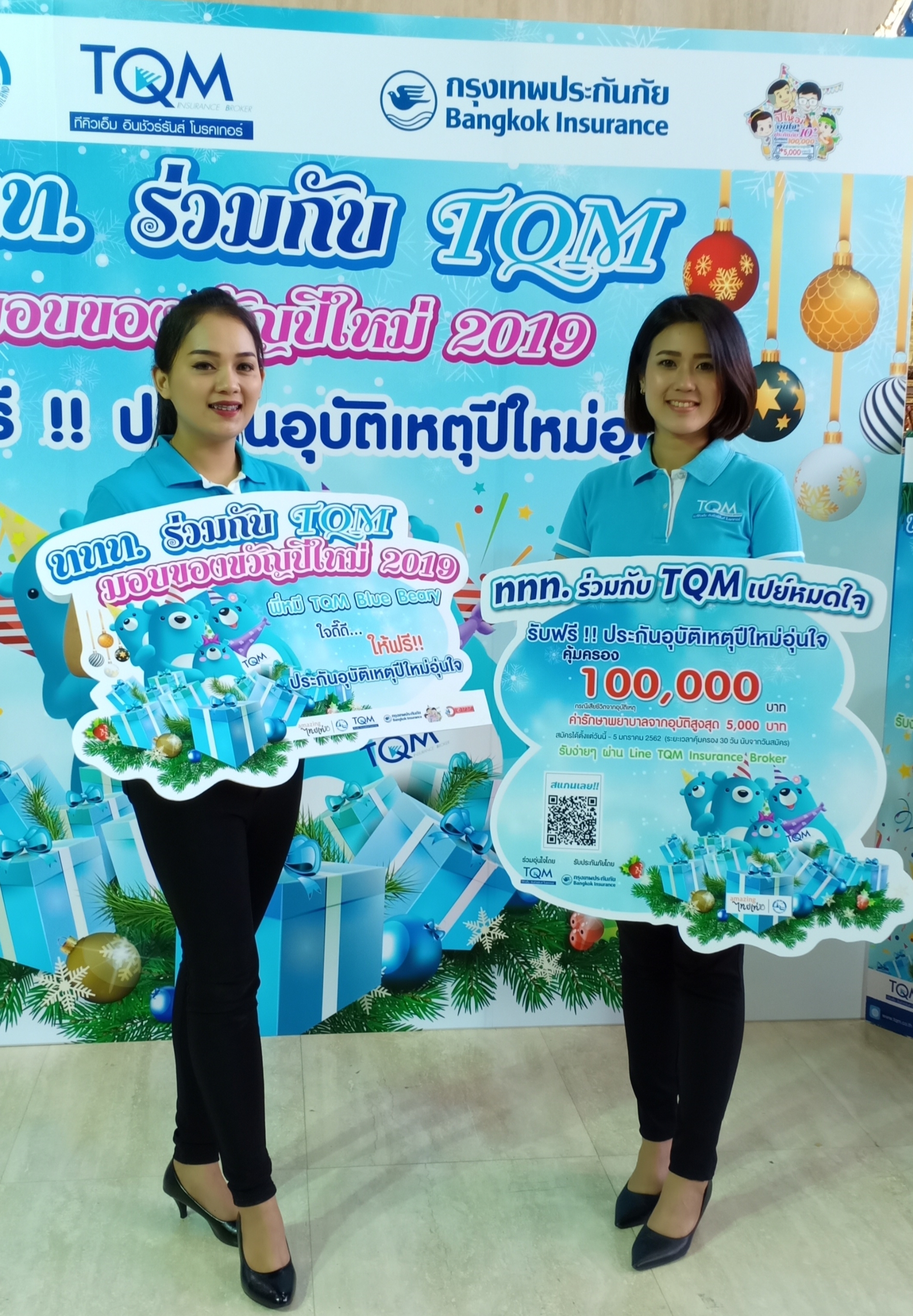 ดร.อัญชลิน พรรณนิภา ประธาน บริษัท ทีคิวเอ็ม อินชัวร์รันส์ โบรคเกอร์ จำกัด กล่าวในรายละเอียดของ “ประกันอุบัติเหตุปีใหม่อุ่นใจ” ว่าเป็นการขานรับนโยบายของสำนักคณะกรรมการกำกับและส่งเสริมการประกอบธุรกิจประกันภัย (คปภ.) ในความร่วมมือกับ ททท. มอบกรมธรรม์ “ประกันอุบัติเหตุปีใหม่อุ่นใจ” แก่ลูกค้าและประชาชนคนไทยทั่วประเทศ จำนวน 100,000 ราย