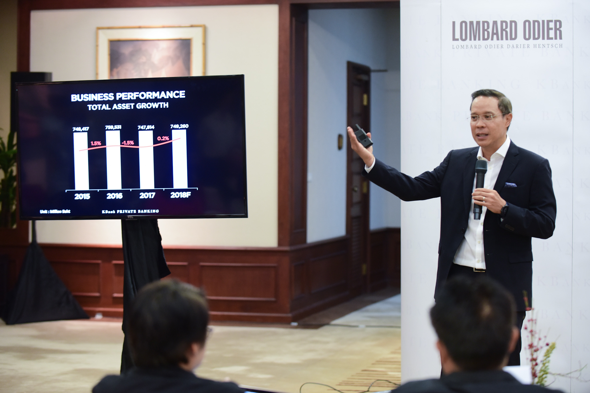 สำหรับการดำเนินงานธุรกิจ Private Banking ของธนาคารในปี 2561 ยังมีการเติบโตอย่างต่อเนื่อง แม้ตลาดการลงทุนจะมีความท้าทายเมื่อเทียบกับปีที่ผ่านมา เห็นได้จากการเติบโตของจำนวนลูกค้าและสินทรัพย์ภายใต้การจัดการ (AUM) โดยมีจำนวนลูกค้า 1,1000 ราย ขณะที่ทรัพย์สินภายใต้การจัดการทั้งหมดประมาณ 750,000 ล้านบาท โดยจำนวนลูกค้าเติบโตขึ้น 8% และ AUM เติบโต 0.2 % เมื่อเทียบกับช่วงปีที่ผ่านมา