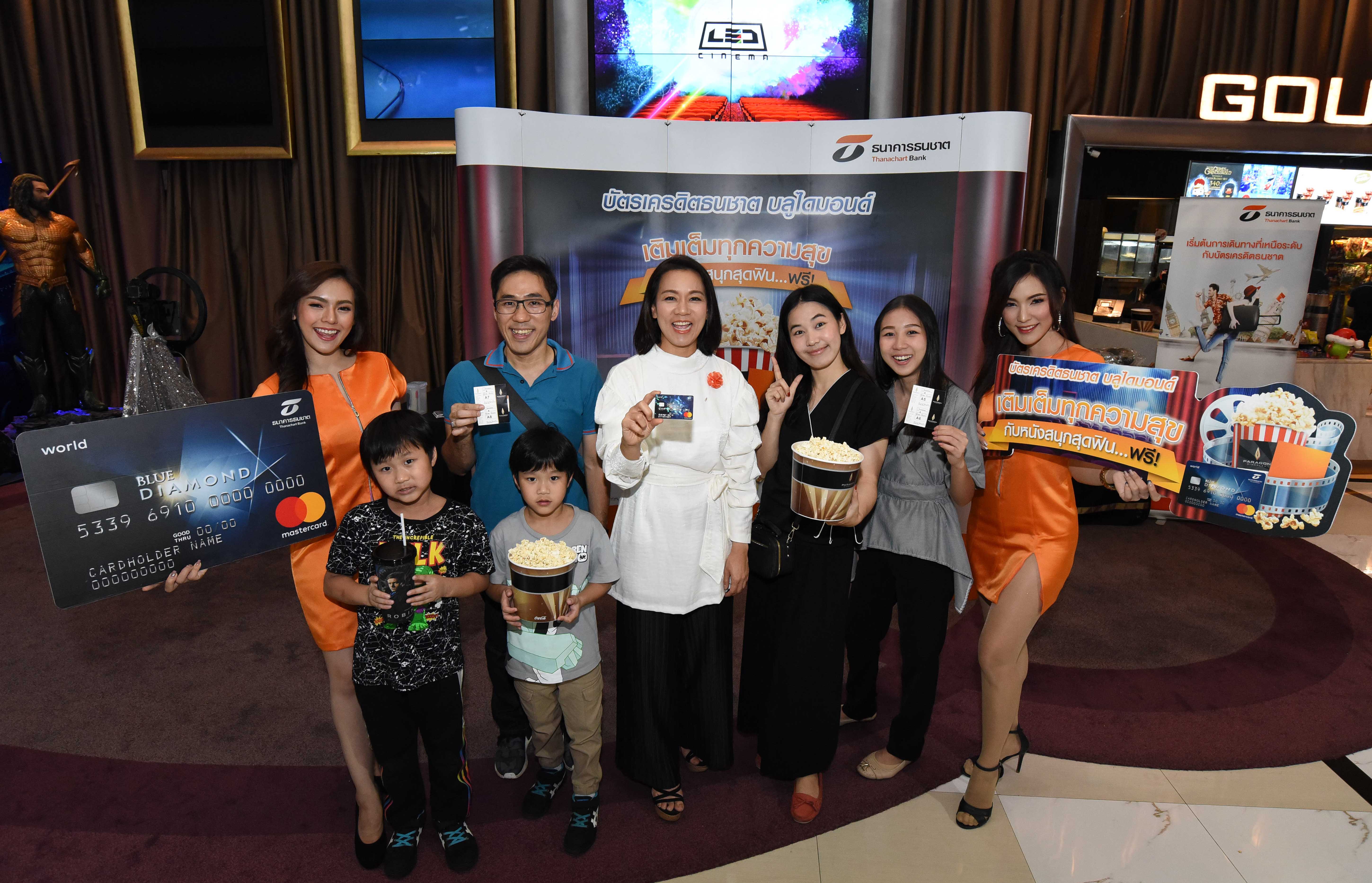 26 ธันวาคม 2561 : นางธีรนารถ พ่วงมหา ผู้อำนวยการอาวุโส ฝ่ายผลิตภัณฑ์บัตรเครดิตและสินเชื่อส่วนบุคคล ธนาคารธนชาต จำกัด (มหาชน) มอบความสุขส่งท้ายปีเพื่อขอบคุณลูกค้า บัตรเครดิต ธนชาต บลูไดมอนด์ ที่มีประวัติการชำระดีและใช้จ่ายต่อเนื่อง ด้วยกิจกรรม “บัตรเครดิต BLUE Diamond เติมเต็มทุกความสุข กับหนังสนุกสุดฟิน!”