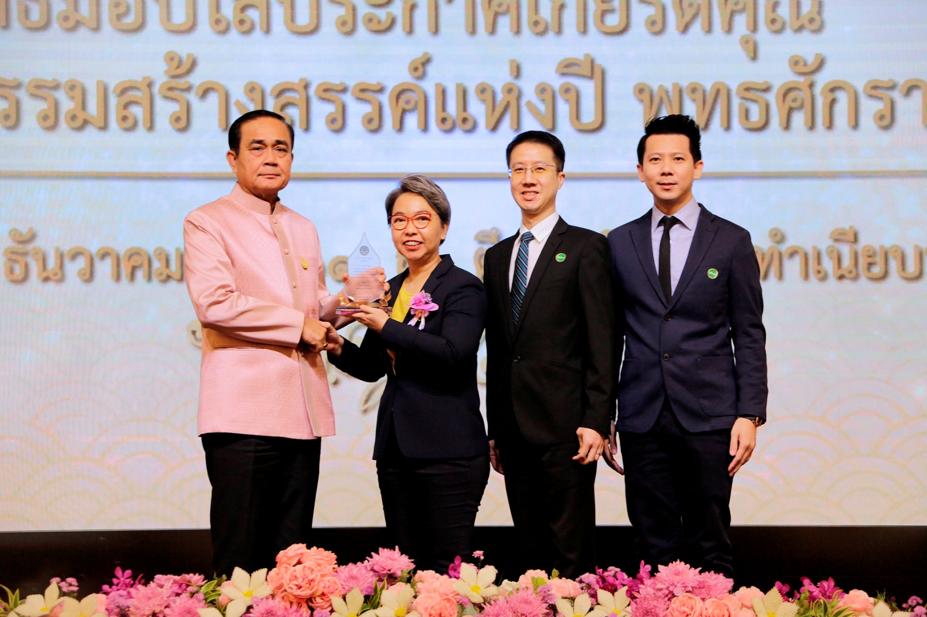 กรุงเทพฯ 7 มกราคม 2561 : ณญาณี เผือกขำ (ที่ 2 จากซ้าย) กรรมการผู้จัดการ บริษัท อยุธยา แคปปิตอล เซอร์วิสเซส จำกัด รับมอบโล่ประกาศเกียรติคุณ “สุดยอดวัฒนธรรมสร้างสรรค์แห่งปี พ.ศ. 2561 ประเภทคลิปวิดีโอสร้างสรรค์” จาก พลเอก ประยุทธ์ จันทร์โอชา (ซ้ายสุด) นายกรัฐมนตรี ณ ตึกสันติไมตรี ทำเนียบรัฐบาล