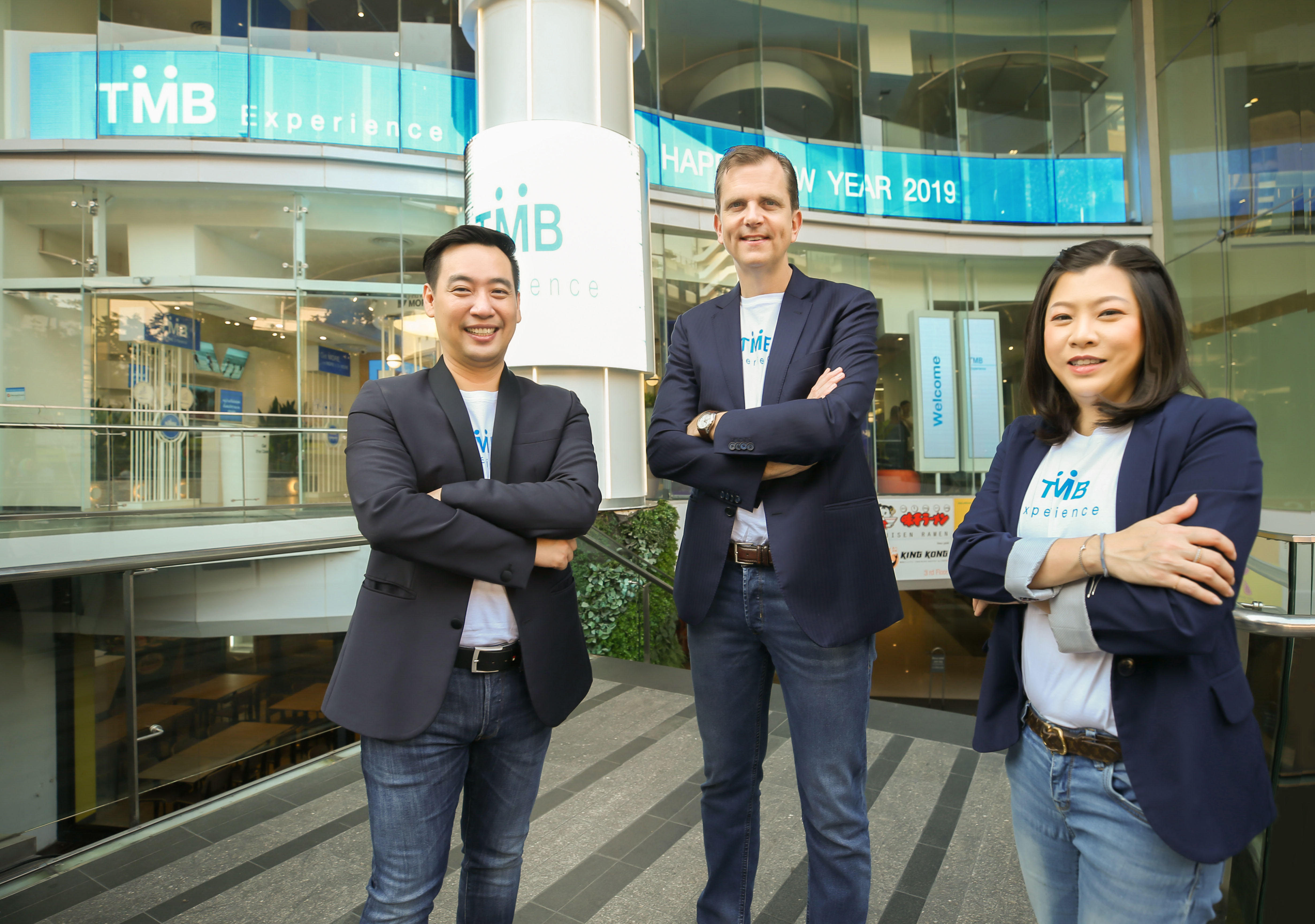 20 มกราคม 2562 : ทีเอ็มบี นำโดย รูว์ ไฮซแมน (กลาง) ประธานเจ้าหน้าที่บริหารลูกค้ารายย่อย พร้อมด้วย วราณี วรรณรัตน์ (ขวา) หัวหน้าเจ้าหน้าที่บริหารพัฒนาช่องทางขายและบริการลูกค้ารายย่อย และ ฐกร เอี่ยมจิรกุล (ซ้าย) หัวหน้าเจ้าหน้าที่บริหารเครือข่ายการขายและที่ปรึกษาลูกค้ารายย่อย