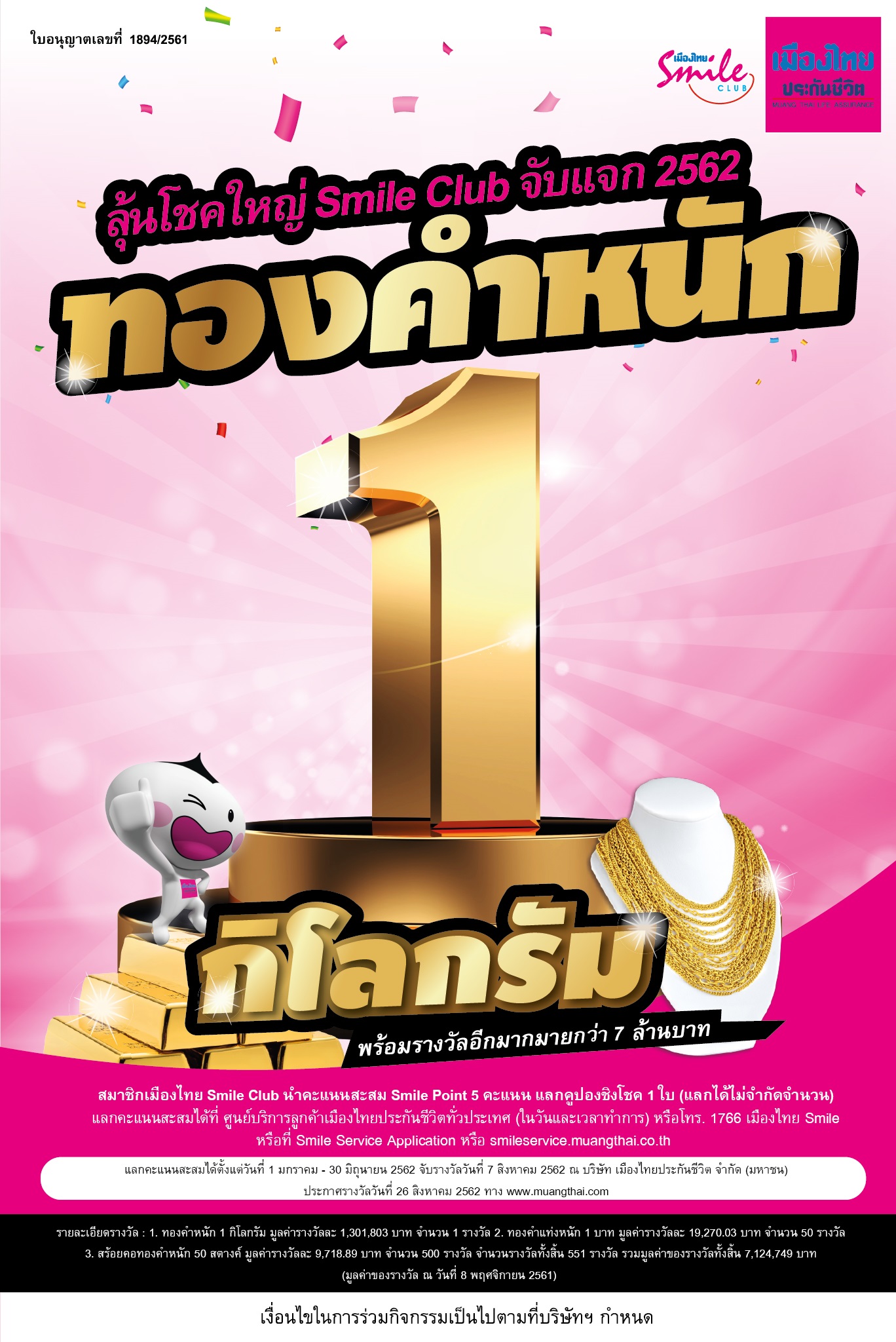 โดยสมาชิกฯ สามารถ ร่วมสนุกด้วยการใช้คะแนนสะสม Smile Point เพียง 5 คะแนน ในการแลกคูปองชิงโชค 1 ใบ (แลกได้ไม่จำกัดจำนวน) เพื่อลุ้นรับรางวัลมากมายกว่า 500 รางวัล แลกคะแนนได้ตั้งแต่วันนี้ – 30 มิถุนายน 2562 โดยสามารถแลกคะแนนสะสม Smile Point ผ่านทาง Smile Service Application หรือ Smileservice.muangthai.co.th หรือ Call Center 1766 กด 4 หรือ ศูนย์บริการลูกค้าเมืองไทยประกันชีวิตทั่วประเทศ ดูรายละเอียดกิจกรรมและสิทธิประโยชน์ Smile is All Around เพิ่มเติมได้ที่ www.muangthai.co.th