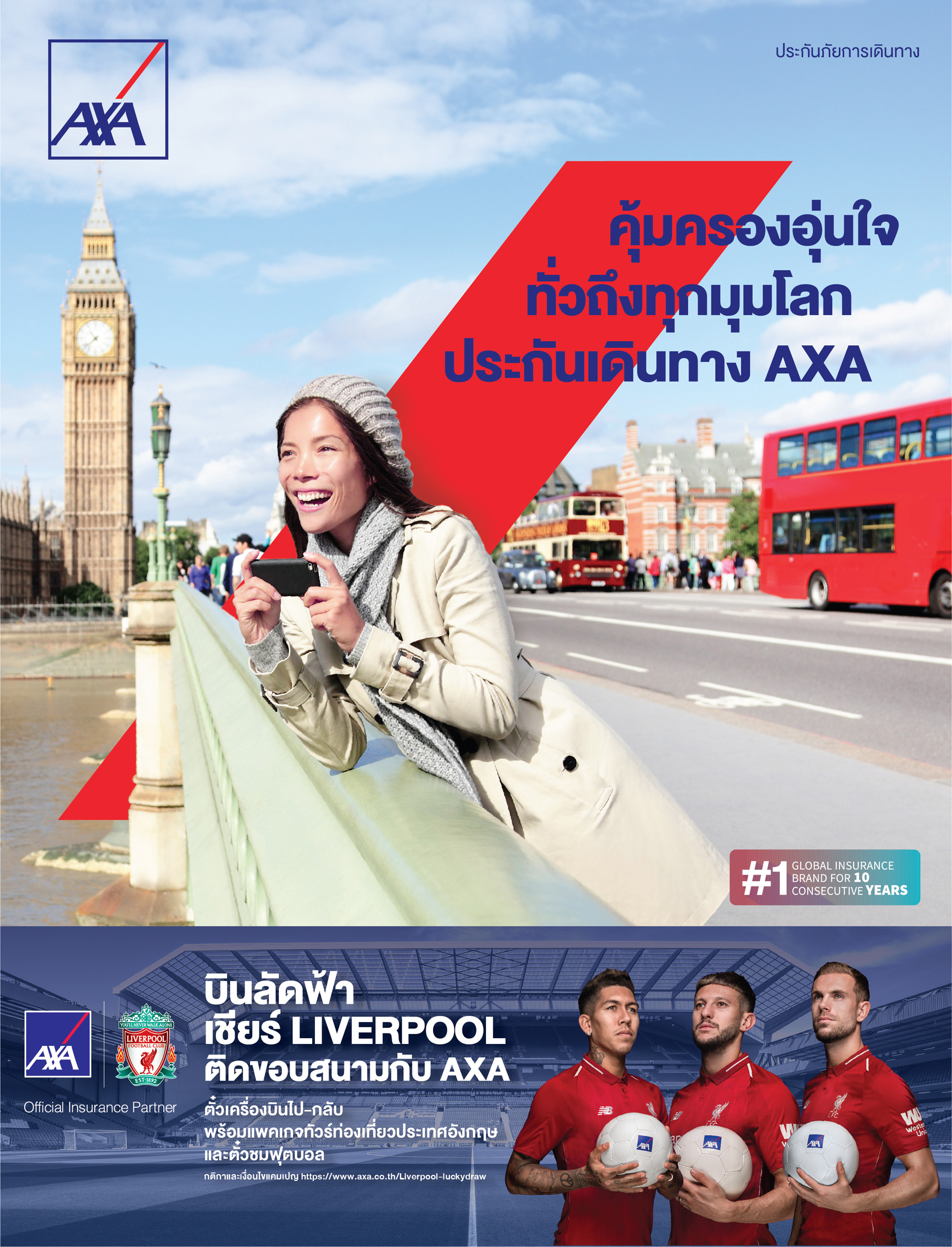โดยมีการชำระเบี้ยประกันภัยระหว่างวันที่ 1 พฤศจิกายน 2561 -31 มีนาคม 2562 ร่วมลุ้นสิทธิ์รับรางวัลบัตรโดยสารเครื่องบินไป-กลับ แพคเกจทัวร์ท่องเที่ยวอังกฤษ และประสบการณ์เอ็กซ์คลูซีฟติดขอบสนาม ที่สนามแอนฟิลด์ สเตเดียม เมืองลิเวอร์พูลในวันที่ 12 พฤษภาคม 2562 รวม 4 รางวัล รวมมูลค่ากว่า 700,000 บาท เพียงลงทะเบียนที่เว็บไซต์ www.axa.co.th เพื่อลุ้นสิทธิ์รับรางวัล ตั้งแต่บัดนี้ จนถึง 31 มีนาคมศกนี้ ประกาศรายชื่อผู้โชคดีทางเว็บไซต์ www.axa.co.th ในวันที่ 23 เมษายน 2562 ![]()