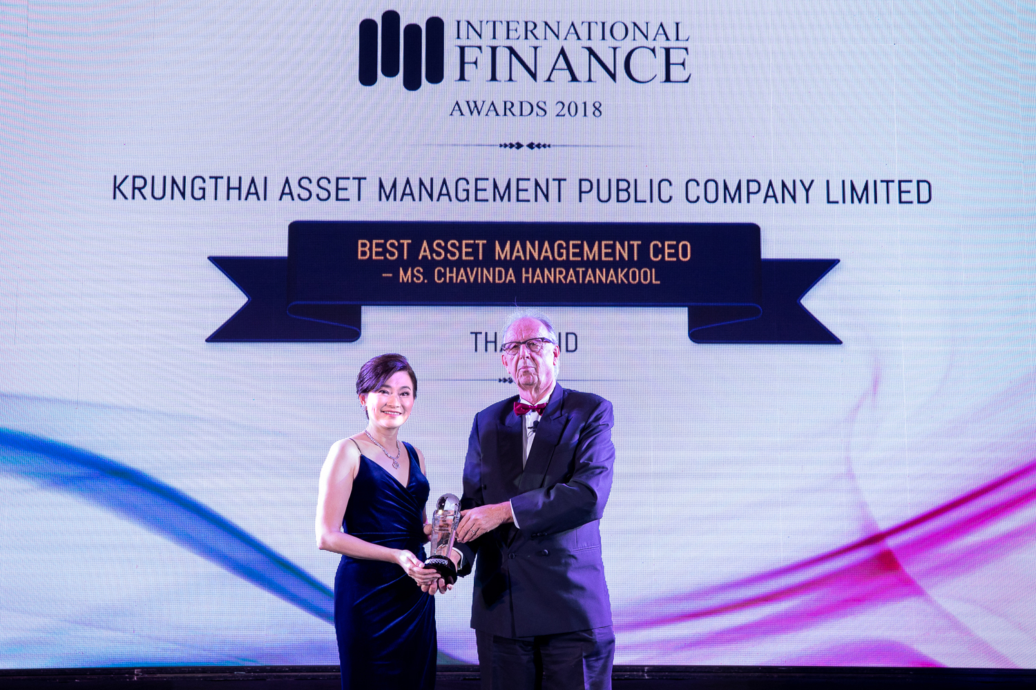 31 มกราคม 2562 : ชวินดา หาญรัตกูล กรรมการผู้จัดการ บริษัทหลักทรัพย์จัดการกองทุน กรุงไทย จำกัด (มหาชน) หรือ KTAM เข้ารับรางวัล Best Asset Management CEO Thailand จาก Mr. Phil Blizzard ในงาน International Finance Awards 2018 จัดโดย International Finance Publications ซึ่งเป็นนิตยสารการเงินระดับแนวหน้าของประเทศอังกฤษ ณ โรงแรมแกรนด์ ไฮแอท เอราวัณ เมื่อเร็วๆ นี้ ![]()