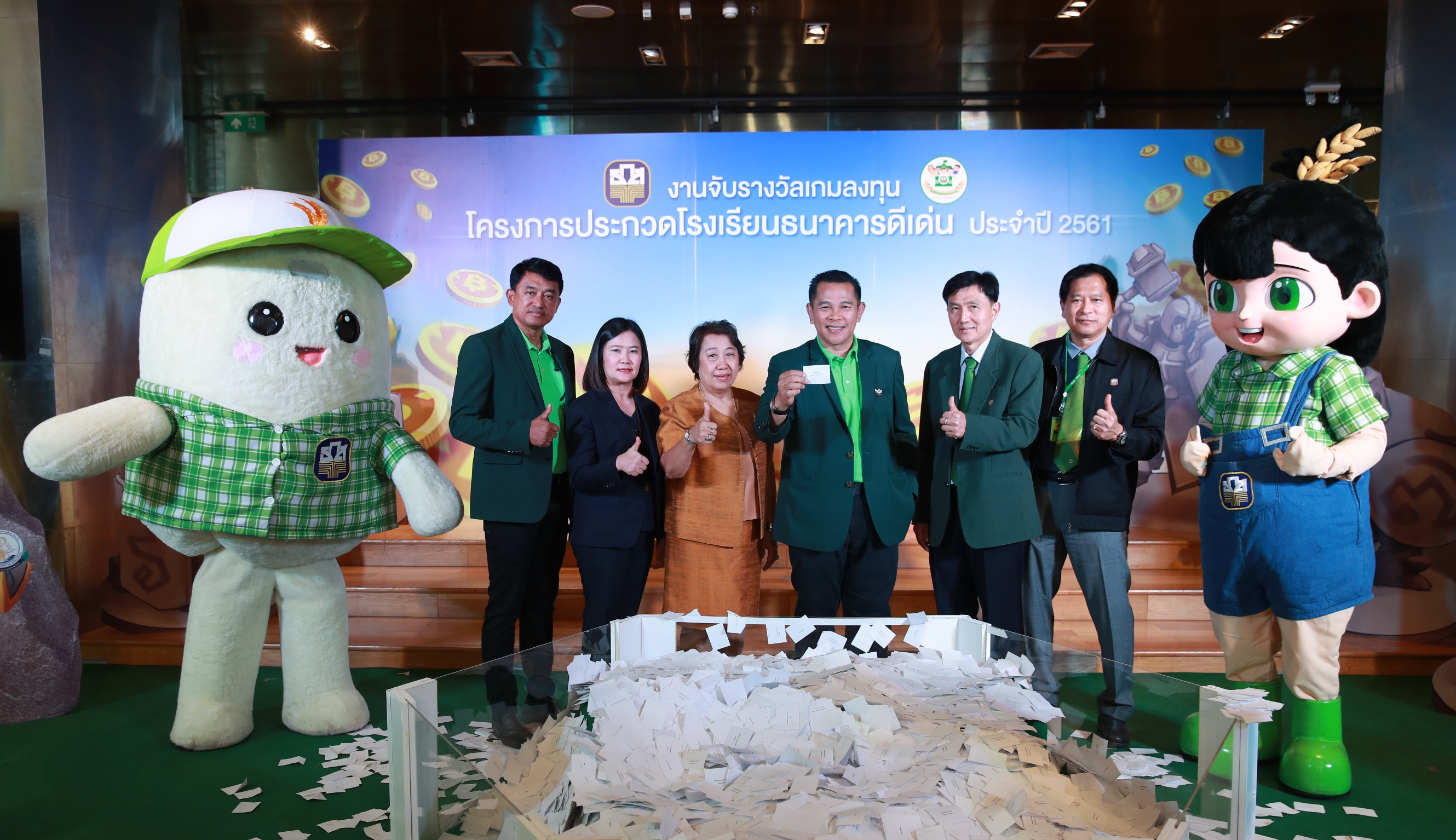 8 กุมภาพันธ์ 2562 : นายกษาปณ์ เงินรวง ผู้ช่วยผู้จัดการธนาคารเพื่อการเกษตรและสหกรณ์การเกษตร (ธ.ก.ส.) เป็นประธานในงานจับรางวัลเพื่อมอบโชคให้แก่ผู้ร่วมสนุกในกิจกรรมร่วมโหวตและให้คะแนนแก่โรงเรียนที่ เข้าร่วมประกวดโรงเรียนธนาคารดีเด่น ประจำปี 2561 โดยผู้ร่วมกิจกรรมในครั้งนี้ถือเป็นส่วนหนึ่งในการค้นหาสุดยอดโรงเรียนธนาคาร