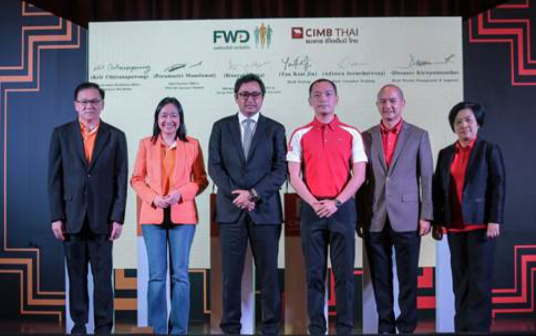 โดยได้รับเกียรติจาก บินายัค ดุตตา ประธานเจ้าหน้าที่สายงานช่องทางจัดจำหน่าย กลุ่มเอฟดับบลิวดี (คนที่ 3 จากซ้าย) กฤต จิตรนภาวงศ์ ประธานเจ้าหน้าที่สายงานช่องทางการจัดจำหน่ายพิเศษ บริษัท เอฟดับบลิวดี ประกันชีวิต จำกัด (มหาชน) (คนที่ 1 จากซ้าย) ตัน คีท จิน รองกรรมการผู้จัดการใหญ่ กลยุทธ์ (คนที่ 3 จากขวา) และ ดุษณี เกลียวปฏินนท์ ผู้ช่วยกรรมการผู้จัดการใหญ่ บริหารผลิตภัณฑ์การออม ธนาคาร ซีไอเอ็มบี ไทย จำกัด (มหาชน) (คนที่ 1 จากขวา) ร่วมเป็นสักขีพยาน ณ ห้องออดิทอเรียม ชั้น 9 ธนาคาร ซีไอเอ็มบี ไทย สำนักงานใหญ่