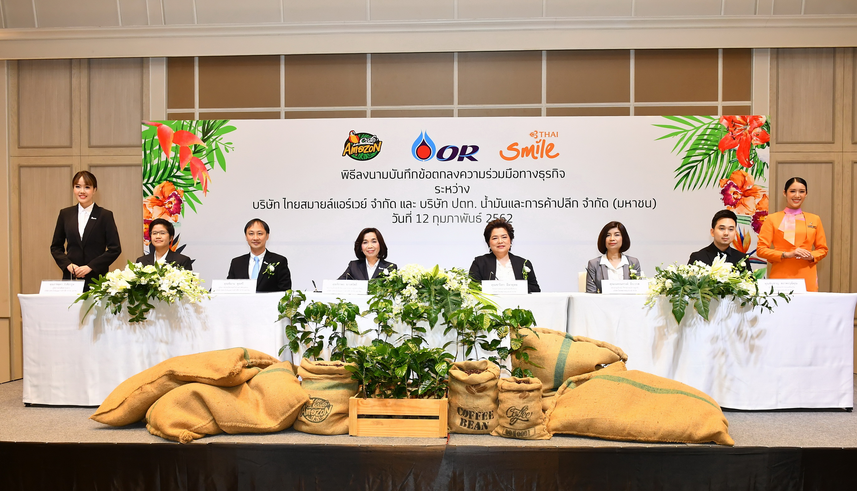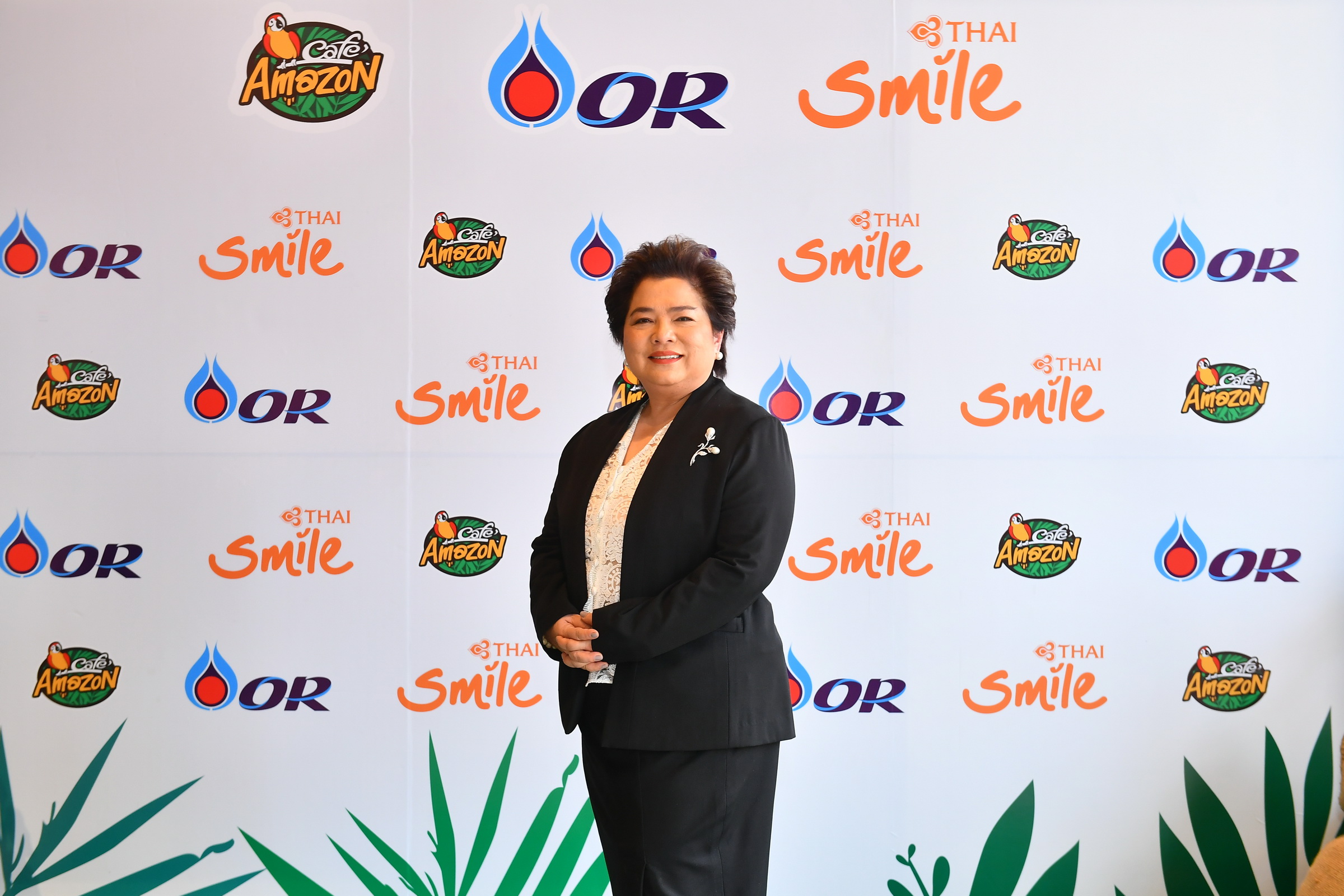 นางสาวจิราพร ขาวสวัสดิ์ ประธานเจ้าหน้าที่บริหารและกรรมการผู้จัดการใหญ่ บริษัท ปตท. น้ำมันและการค้าปลีก จำกัด (มหาชน) หรือ พีทีที โออาร์ ผู้บริหารแบรนด์ คาเฟ่ อเมซอน กล่าวถึงความร่วมมือกับสายการบินไทยสมายล์ในครั้งนี้ว่า “คาเฟ่ อเมซอน มีความพร้อมนำผลิตภัณฑ์เมล็ดกาแฟสายพันธุ์อาราบิก้าที่ พีทีที โออาร์ รับซื้อจากมูลนิธิโครงการหลวง จังหวัดเชียงใหม่ มาคั่วและผลิตโดยยังคงเอกลักษณ์การคั่วที่เข้มข้นของคาเฟ่ อเมซอน