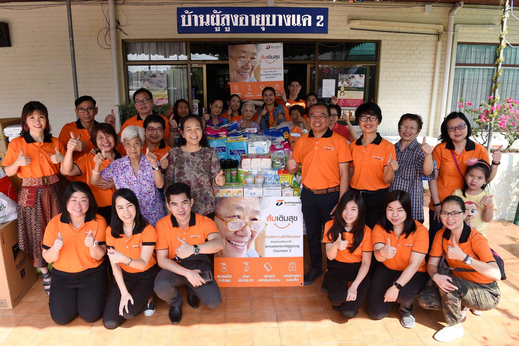 เชิญชวนผู้บริหารและพนักงานร่วมส่งมอบความรักและเติมเต็มความสุขผ่านการบริจาคเงิน และสิ่งของเครื่องใช้จำเป็น อาทิ สเปรย์ฉีดกำจัดยุง น้ำยาเช็ดกระจก ฟองน้ำล้างจาน ผงซักฟอก ผ้าอ้อมสำหรับผู้ใหญ่ แผ่นรองซับ สำลี และพลาสเตอร์ปิดแผล (ไมโครพอร์) มามอบให้แก่ผู้สูงอายุ โดยมี วาสนา เรืองโชติ ผู้ปกครองสถานสงเคราะห์ผู้สูงอายุบ้านบางแค 2 (แถวที่ 2 ลำดับที่ 4 จากซ้าย) เป็นผู้แทนรับมอบ ภายในงานมีจัดเลี้ยงอาหารกลางวัน และกิจกรรมสันทนาการอีกมากมาย