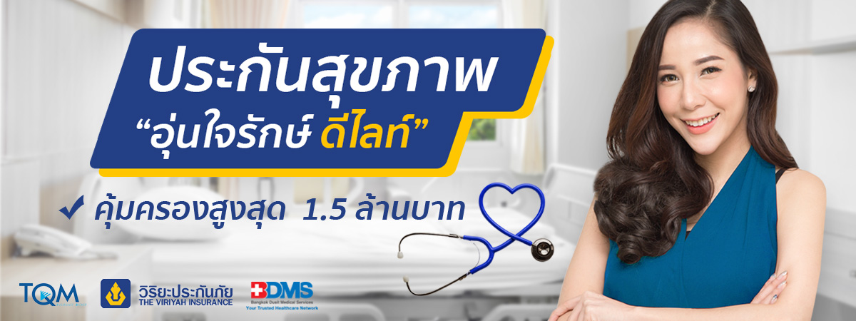 สำหรับประกันสุขภาพอุ่นใจรักษ์ ดีไลท์ (BDMS) รับประกันภัยโดย วิริยะประกันภัย ซื้อได้ในทุกช่องทางของทีคิวเอ็ม และบูธอุ่นใจรักษ์ในเครือโรงพยาบาล BDMSเท่านั้น ข้อมูลเพิ่มเติมติดต่อง่าย ๆ เพียงคลิก www.tqm.co.th หรือ โทร. 1737 ตลอด 24 ชั่วโมง หรือคลิก http://bit.ly/2SLhgNM ![]()