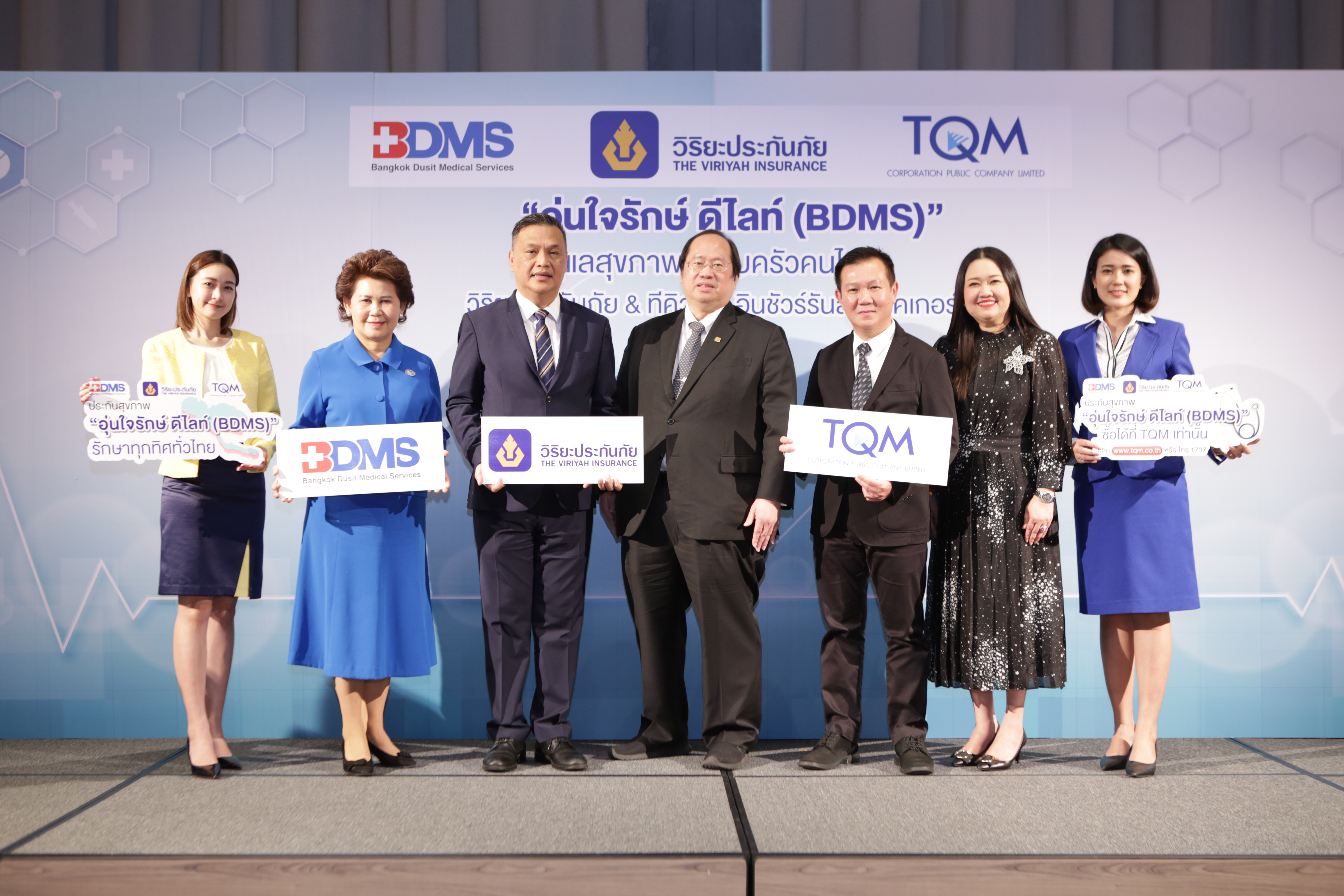 22 กุมภาพันธ์ 2562 : ตลาดประกันสุขภาพคึกคัก 3 ยักษ์ใหญ่ 3 วงการ “วิริยะประกันภัย กลุ่มพันธมิตรกรุงเทพดุสิตเวชการ บริษัท ทีคิวเอ็ม คอร์ปอเรชั่น จำกัด (มหาชน) โดย ทีคิวเอ็ม อินชัวร์รันส์ โบรคเกอร์” จับมือสร้างนวัตกรรมประกันสุขภาพ “อุ่นใจรักษ์ ดีไลท์ (BDMS)” เพื่อให้คนไทยทั่วประเทศได้เข้าถึงมาตรฐานการรักษาของโรงพยาบาลในกลุ่ม BDMS เผยจุดเด่นคุ้มครองกันยาว ๆ ไม่มีการปฏิเสธการต่ออายุ ไม่ว่าเคลมจะสูงหรืออายุมากขึ้น