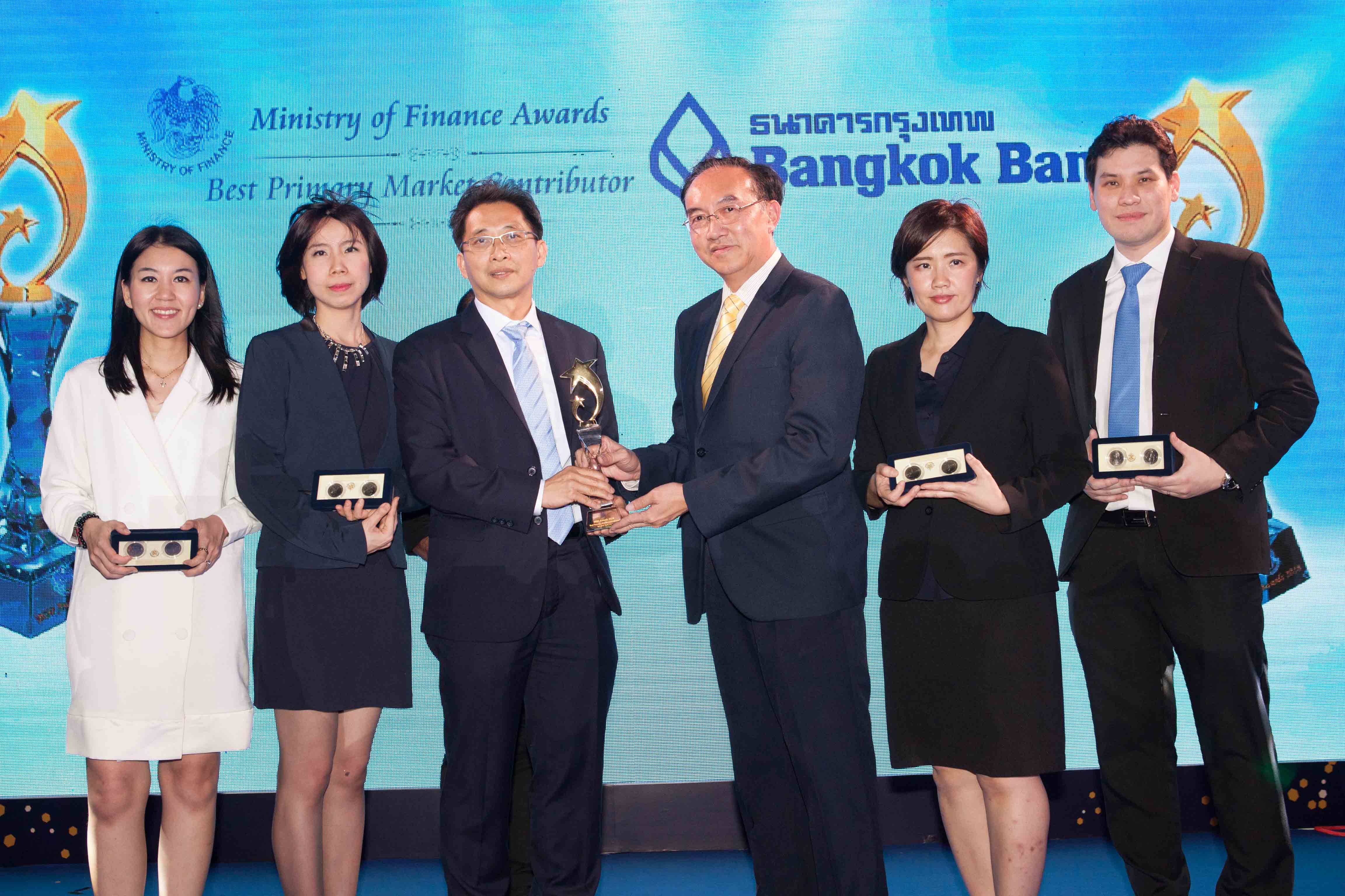 โดยในปีนี้ธนาคารได้รับ 3 รางวัลยอดเยี่ยม ประกอบด้วย รางวัล Best Primary Market Contributor จากกระทรวงการคลัง (MOF Awards) ในฐานะสถาบันการเงินที่ได้รับการจัดสรรพันธบัตรรัฐบาลในตลาดแรกสูงสุด รางวัล Best Outright Primary Dealer จากธนาคารแห่งประเทศไทย (BOT Award) ในฐานะสถาบันการเงินคู่ค้าตราสารหนี้ด้วยวิธีอิเล็กทรอนิกส์ (e-Outright) ที่มีบทบาทโดดเด่นสนับสนุนนโยบายด้านการเงินผ่านธุรกรรมซื้อขายพันธบัตรกับธนาคารแห่งประเทศไทย