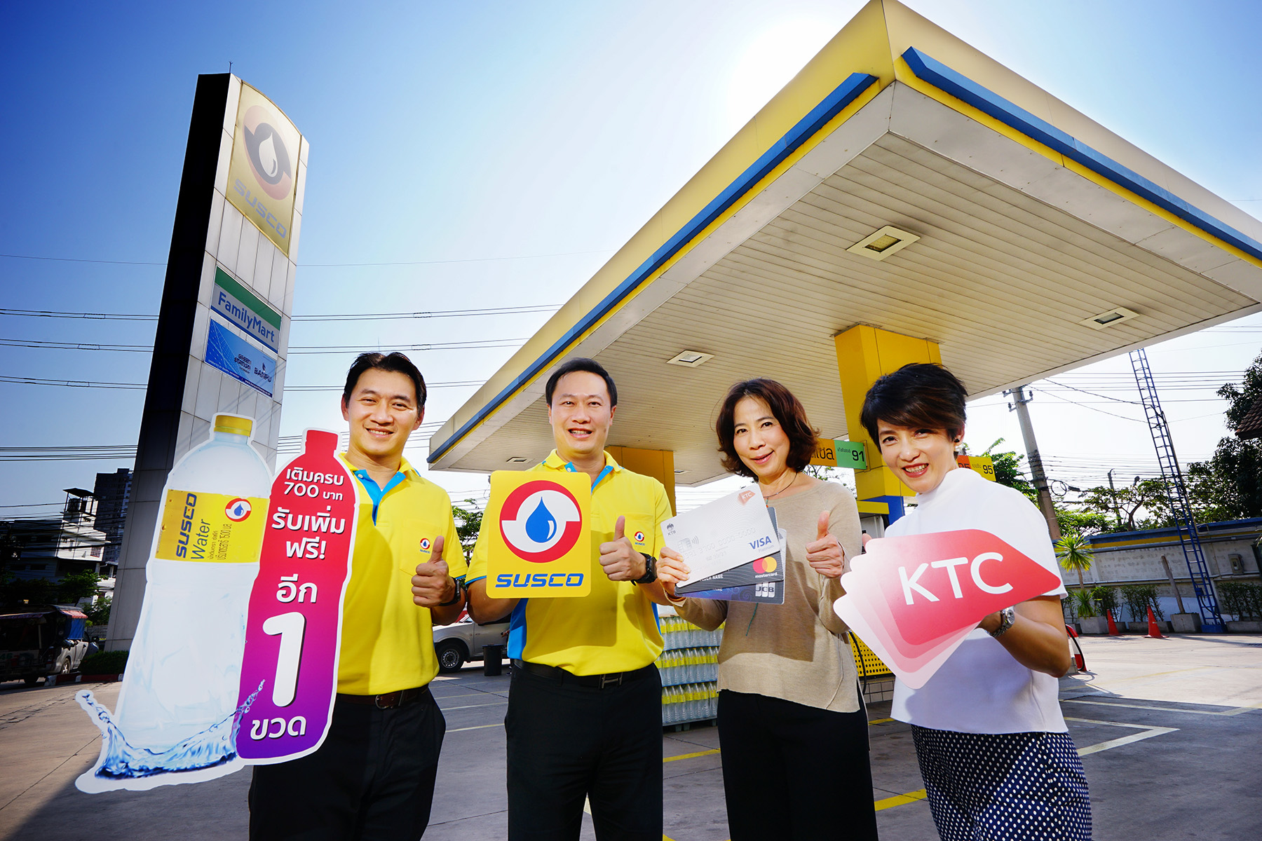 28 กุมภาพันธ์ 2562 : พิทยา วรปัญญาสกุล (กลางขวา) รองประธานเจ้าหน้าที่บริหาร – ธุรกิจบัตรเครดิต “เคทีซี” หรือ บริษัท บัตรกรุงไทย จำกัด (มหาชน) ร่วมกับชัยฤทธิ์ สิมะโรจน์ (กลางซ้าย) กรรมการผู้จัดการ บริษัท ซัสโก้ จำกัด (มหาชน) มอบสิทธิพิเศษให้สมาชิกรับน้ำดื่มขนาด 1.5 ลิตร เพิ่มอีก 1 ขวด ทันที (จากปกติ 1 ขวด) เมื่อเติมน้ำมันครบ 700 บาทขึ้นไปที่ปั๊มซัสโก้ทุกสาขาทั่วประเทศ และชำระด้วยบัตรเครดิตเคทีซี ตั้งแต่วันที่ 1 กุมภาพันธ์ 2562 – 30 มิถุนายน 2562 ![]()