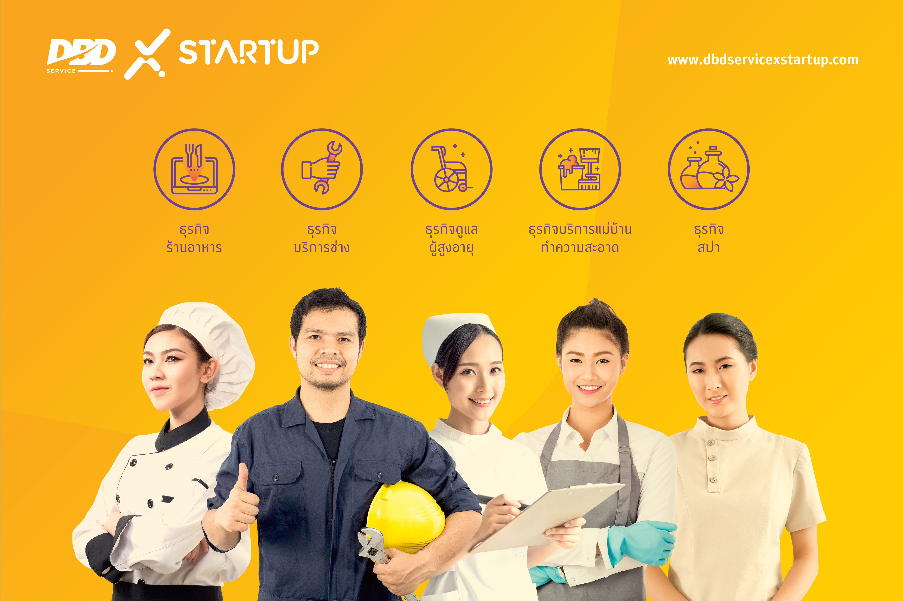 ถึงเวลาคว้าโอกาสในการยกระดับการบริการ หากผู้ให้บริการท่านใดสนใจ สามารถสมัครเข้าร่วมโครงการได้โดยไม่เสียค่าใช้จ่ายใดๆ ได้ที่ www.dbdservicexstartup.com ตั้งแต่วันนี้ – 15 มีนาคม 2562