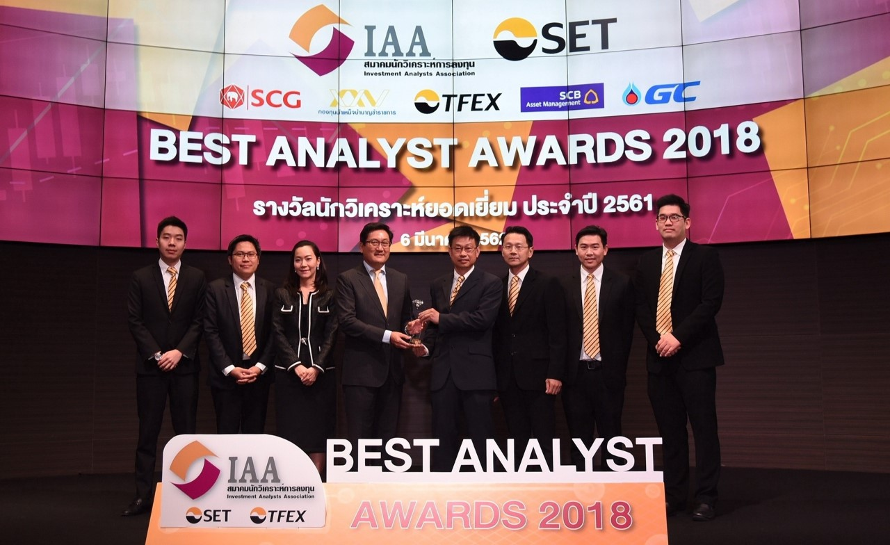 7 มีนาคม 2562 : ภากร ปีตธวัชชัย กรรมการและผู้จัดการตลาดหลักทรัพย์ฯ มอบรางวัลทีมวิเคราะห์ยอดเยี่ยม (นักลงทุนรายบุคคล) ประจำปี 2561 ให้กับทีมนักวิเคราะห์ บมจ.หลักทรัพย์ เมย์แบงก์ กิมเอ็ง (ประเทศไทย) และมอบรางวัลนักวิเคราะห์ยอดเยี่ยมในกลุ่มพลังงานและปิโตรเคมี (นักลงทุนรายบุคคล) ให้กับ สุทธิชัย คุ้มวรชัย โดยมีคณะผู้บริหาร ร่วมแสดงความยินดี ณ อาคารตลาดหลักทรัพย์ฯ รัชดา เร็วๆ นี้ ![]()